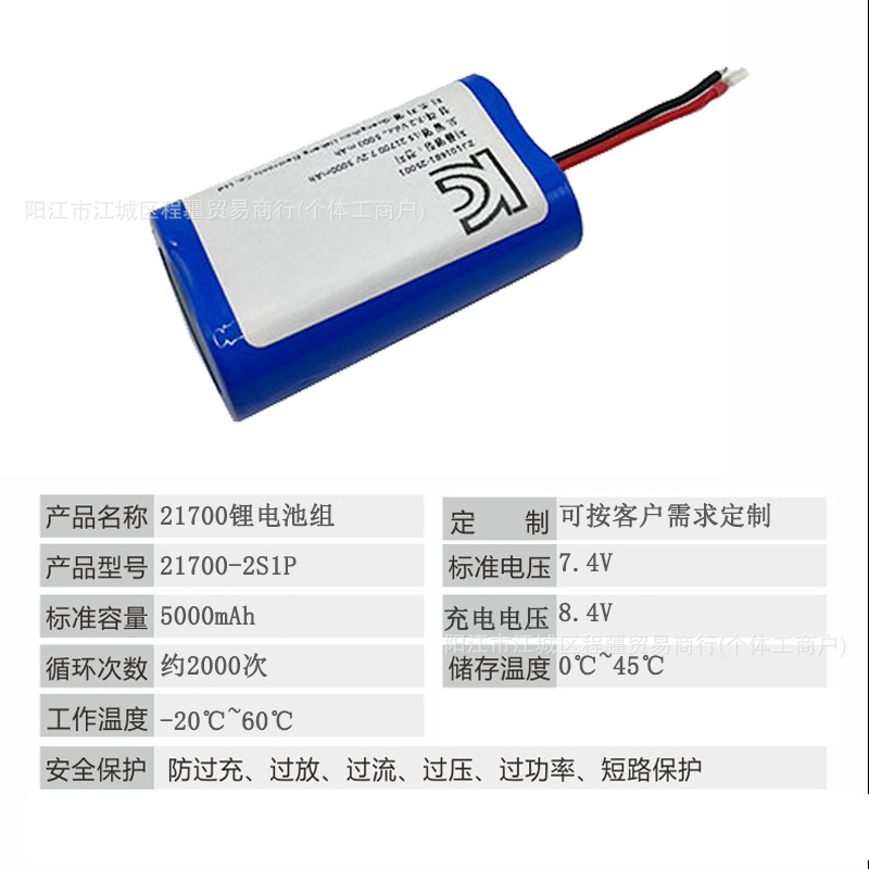 21700 锂电池组7.4V 5000mAh 按摩器 暴力风扇 太阳能灯 玩具