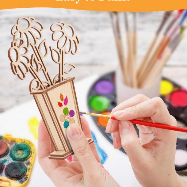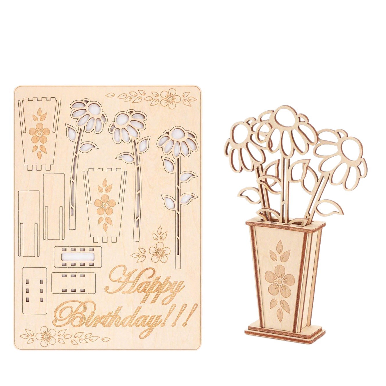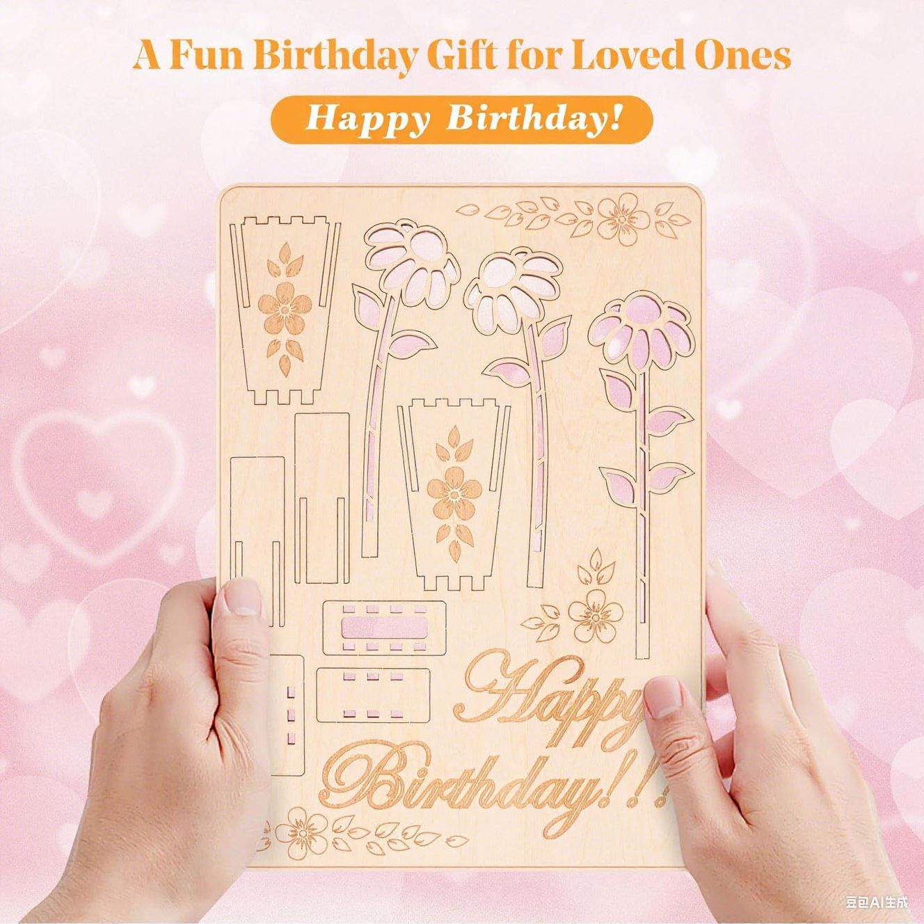 跨境木质3D花束卡片木制拼图生日礼品卡 DIY花卡创意礼物家居装饰
