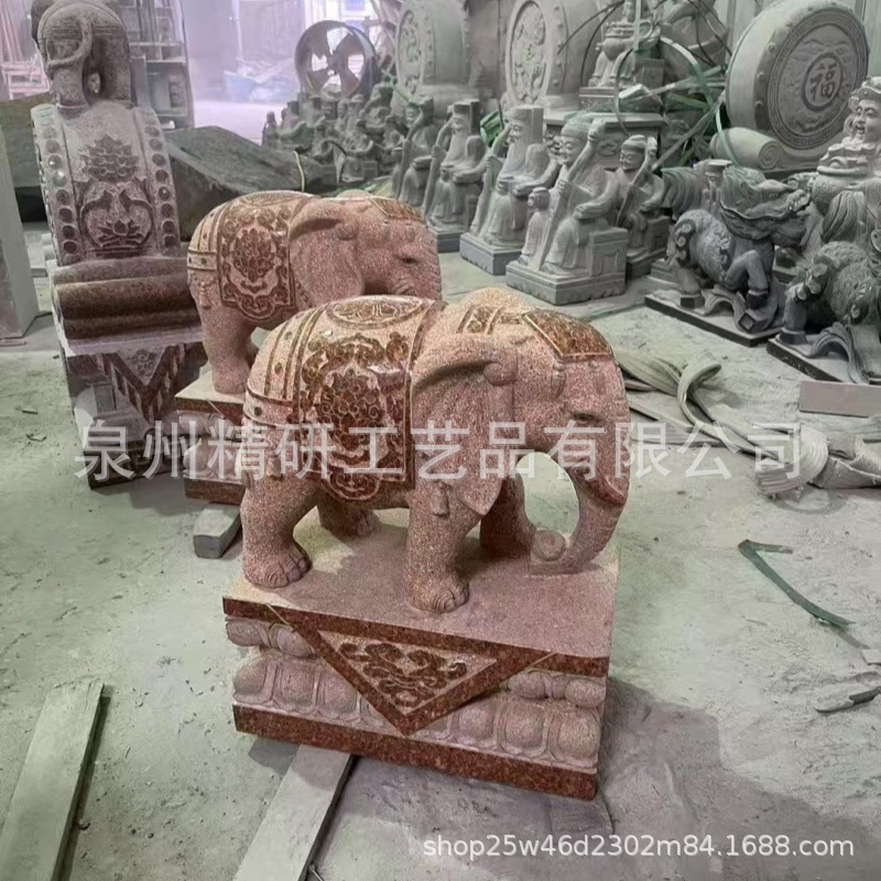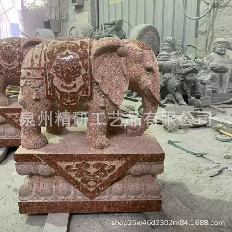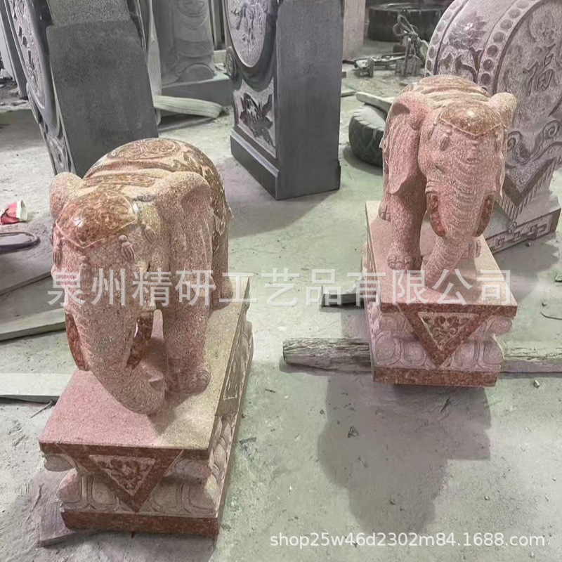 福建红色大门口吉祥大象 石大象看门招财镇宅摆件 吸水卷鼻小象