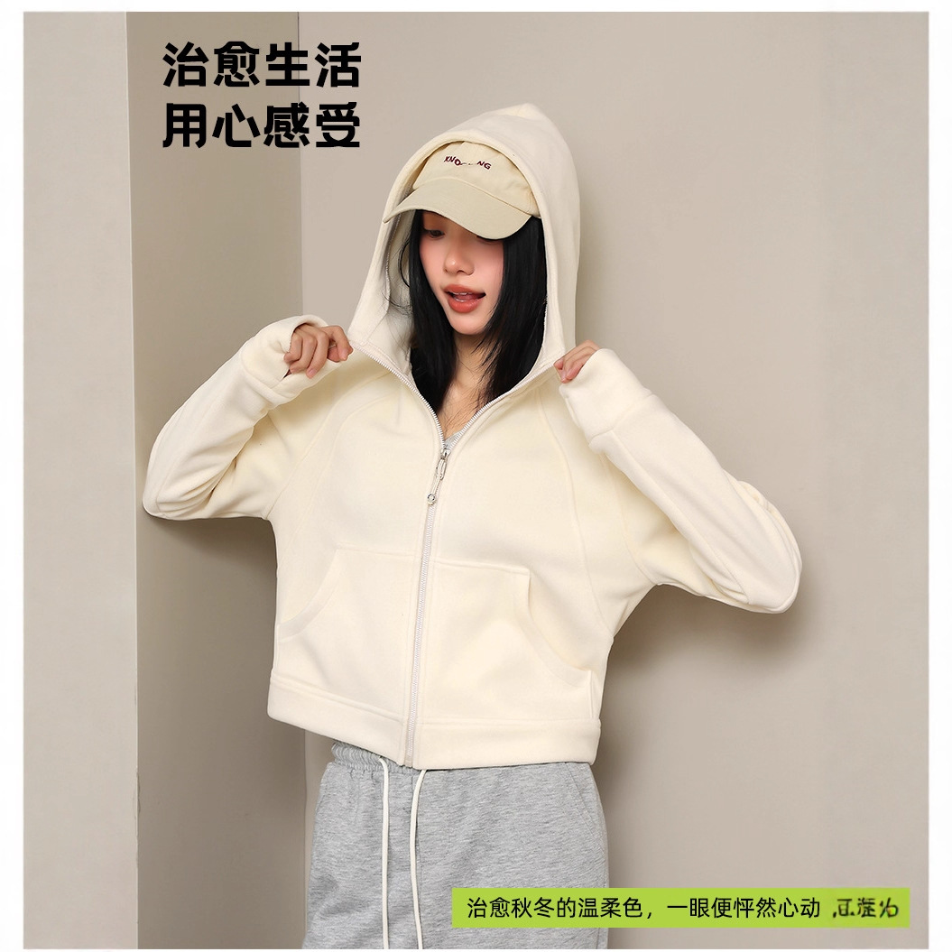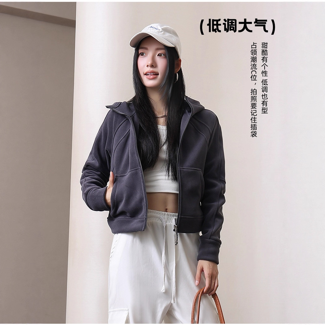 美式辣妹连帽长袖 加绒卫衣女 秋冬休闲宽松短款百搭开衫外套女