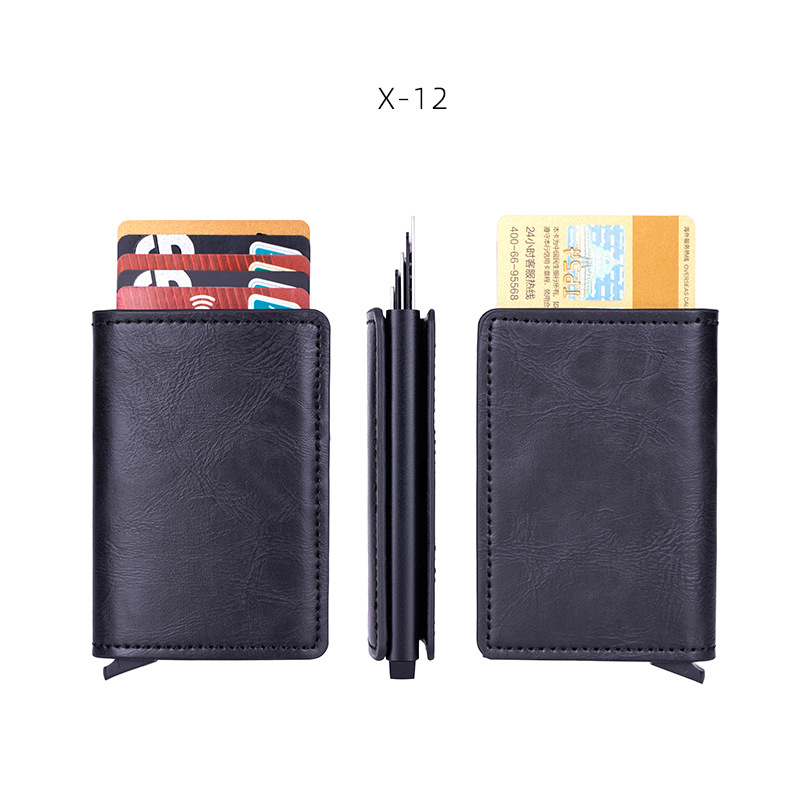 跨境爆款PU皮革时尚钱夹防盗刷卡包自动弹卡RFID铝合金信用卡包