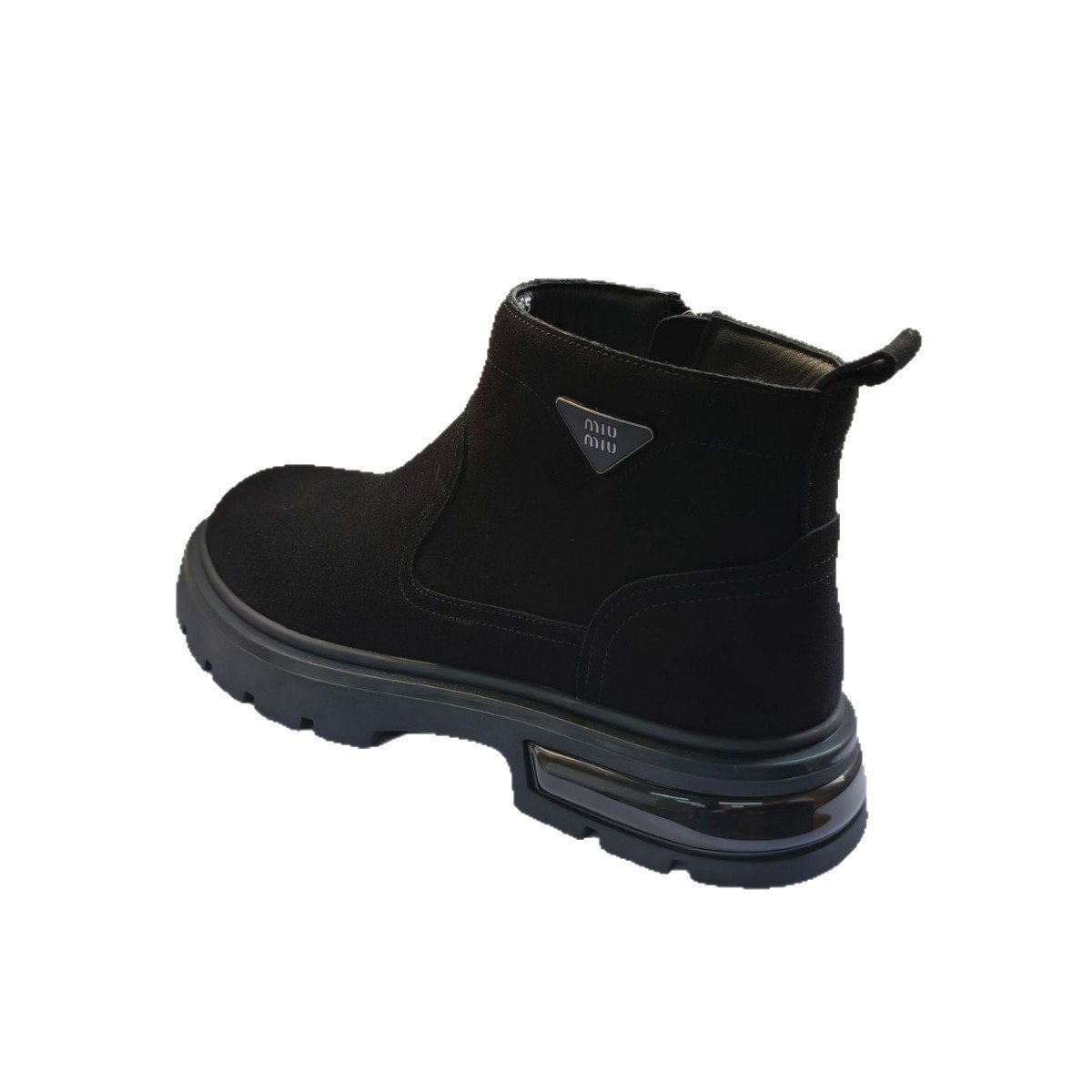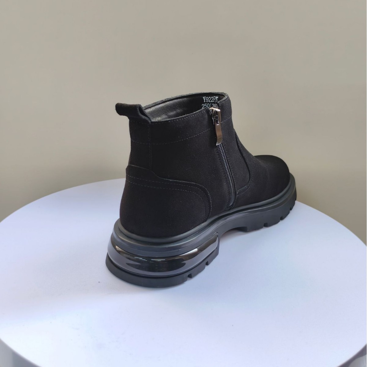【质感反绒皮】黑色短靴女 侧拉链 厚底增高 时尚真皮靴复古哑光
