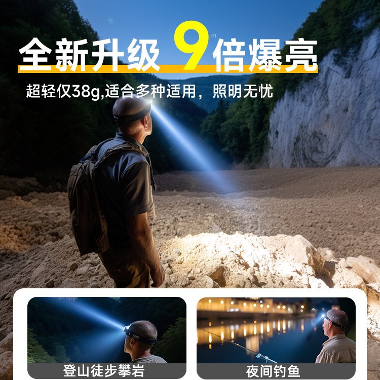 头灯强光超亮充电2025新款夜钓头戴式感应户外登山超长续航正品