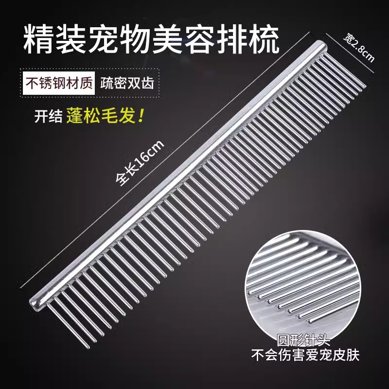 宠物排梳长毛猫梳毛专用梳子开结钢梳布偶猫咪狗狗面梳密齿直排梳