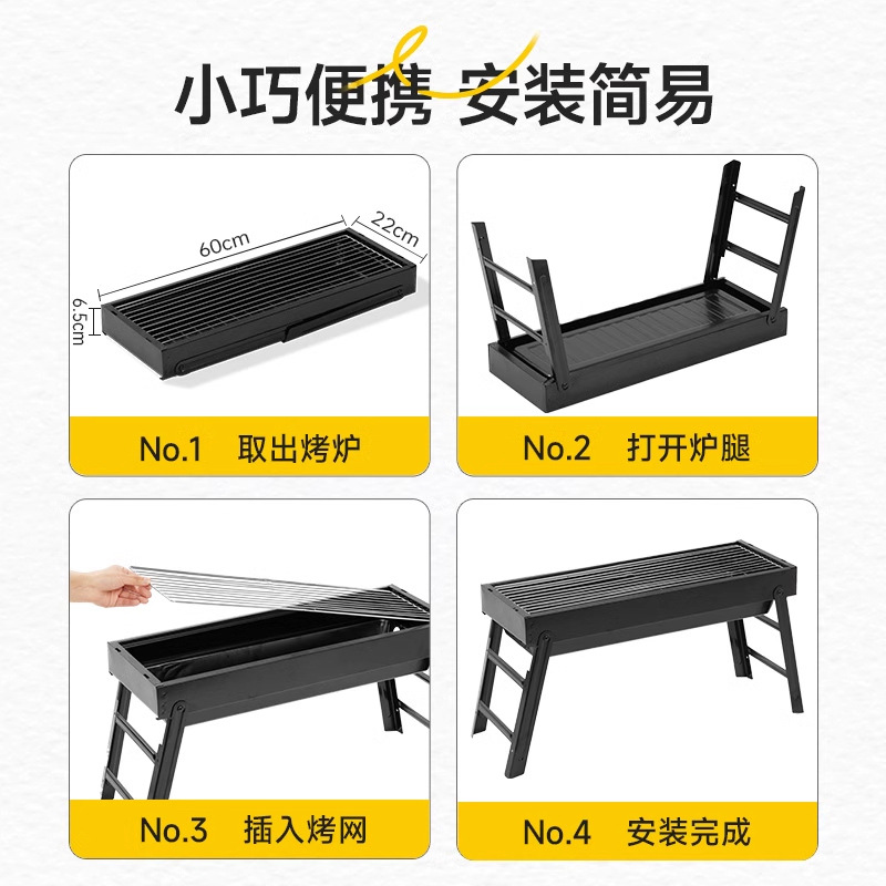 不锈钢烧烤炉家用折叠便携式小型烤炉烤肉架网户外炉子木炭架子