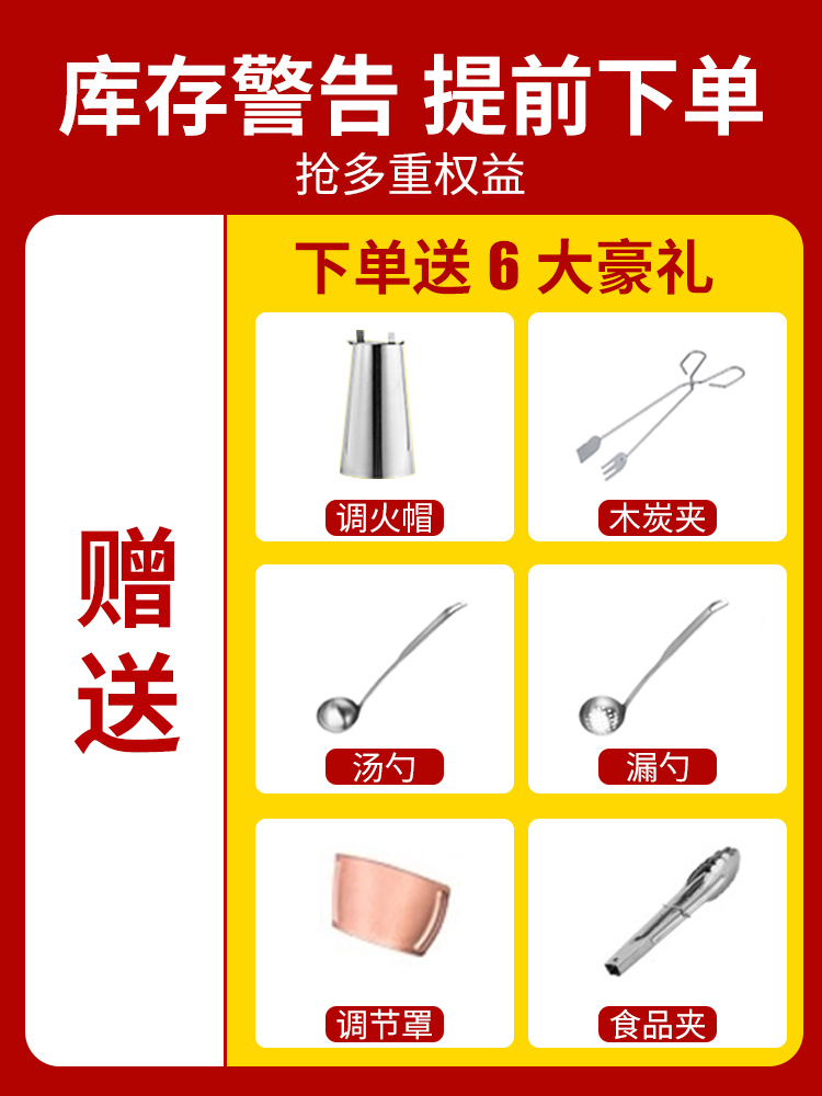 | 颜色 | 方款清汤【食品级304材质】36CM紫铜色(8-12人)买1送6 | 颜色 | 【电炭两用】清汤32CM本色(4-6人)送豪礼 |
