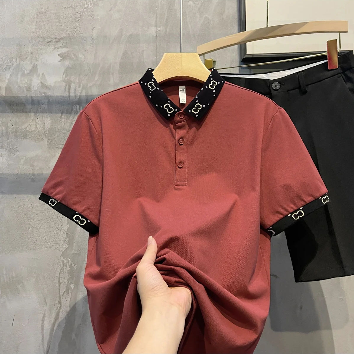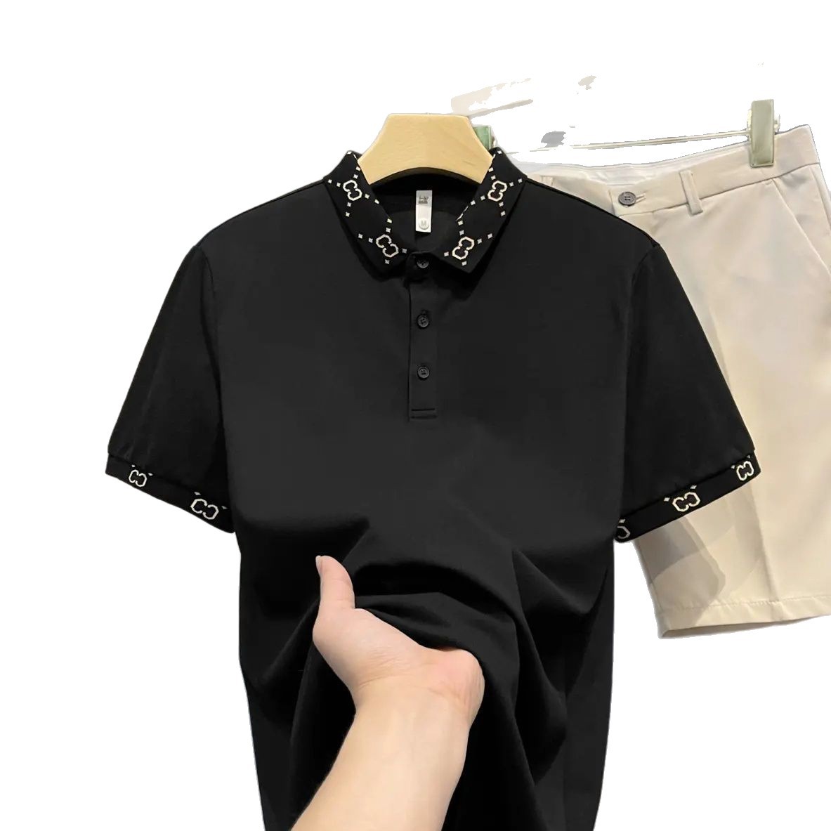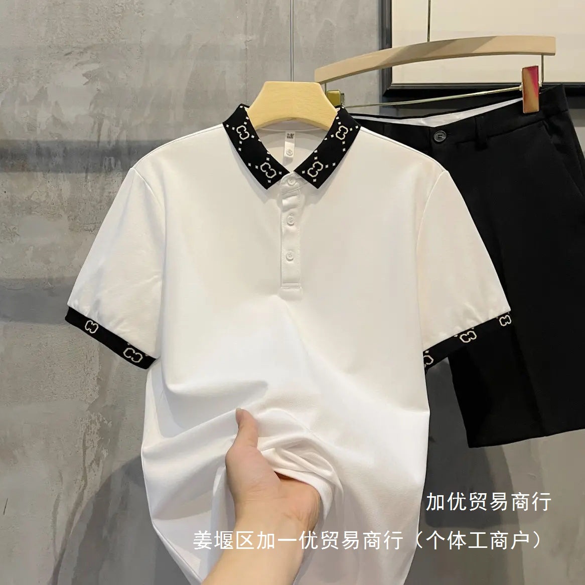 2024夏季新款感拼色翻领POLO衫男士修身短袖男装休闲百搭批发