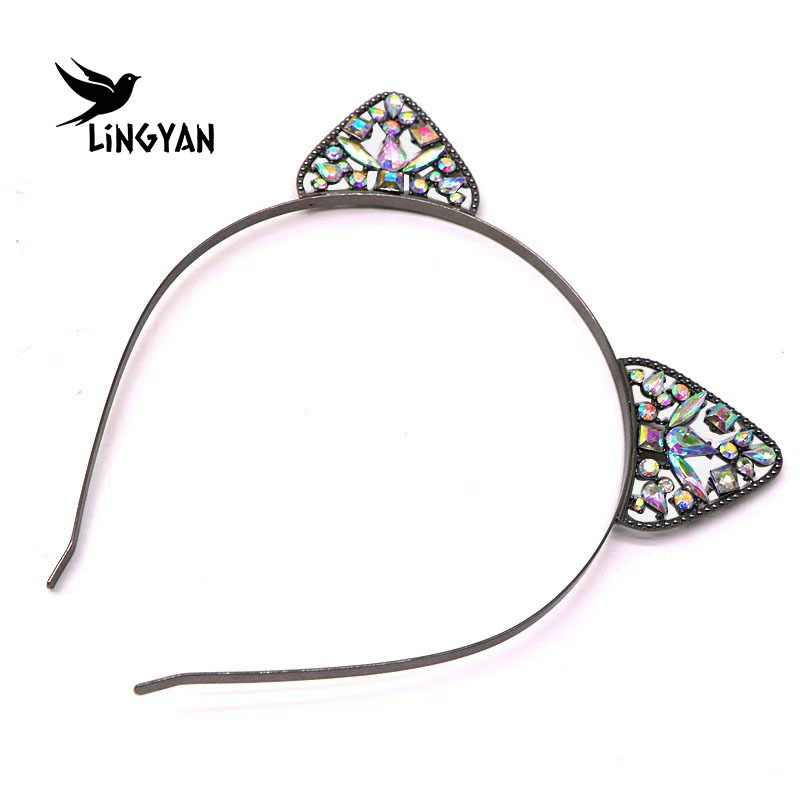 高档闪钻合金镶钻花猫耳朵发箍猫耳朵发箍欧美风女士节日派对装扮