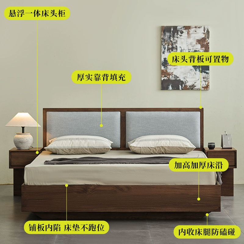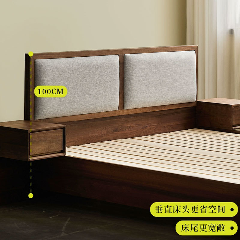 北美黑胡桃木实木床卧室宋氏美学家具原木小户型悬浮床主卧双人床