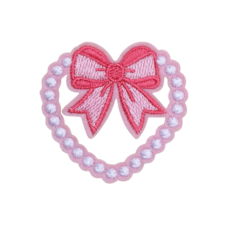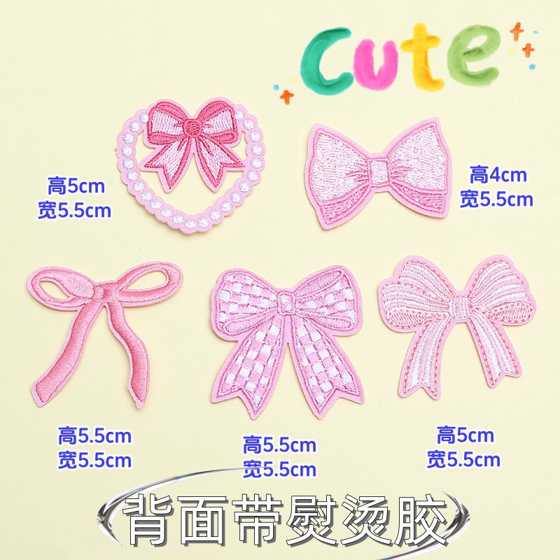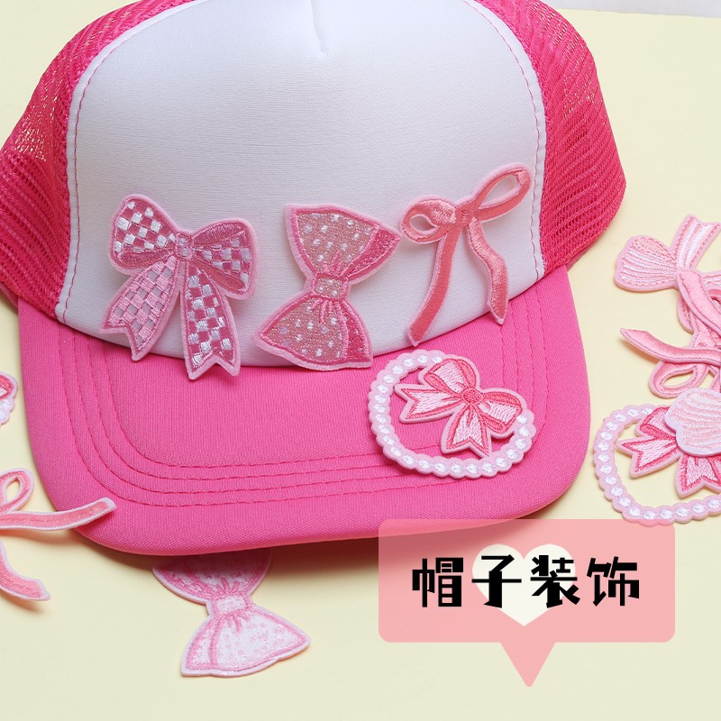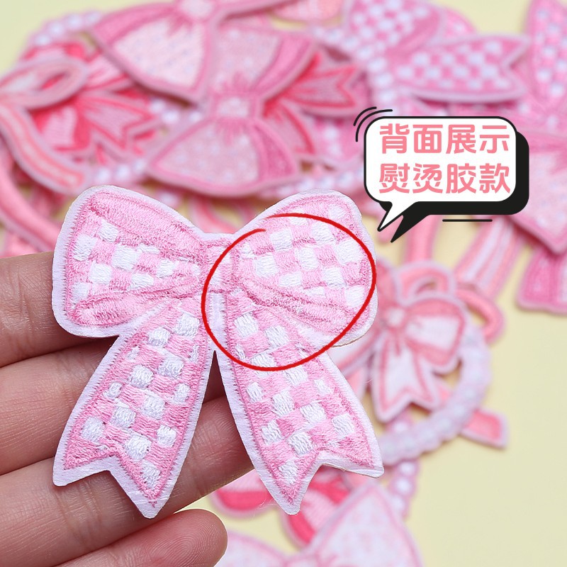 粉色小号刺绣蝴蝶结服装辅料补丁布贴 免缝熨烫款帽子装饰绣花章
