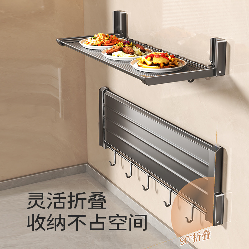 | 层数(规格) | 枪灰色吸盘折叠款备菜架-48cm | 层数(规格) | 枪灰色吸盘折叠款备菜架-48cm带五钩 |