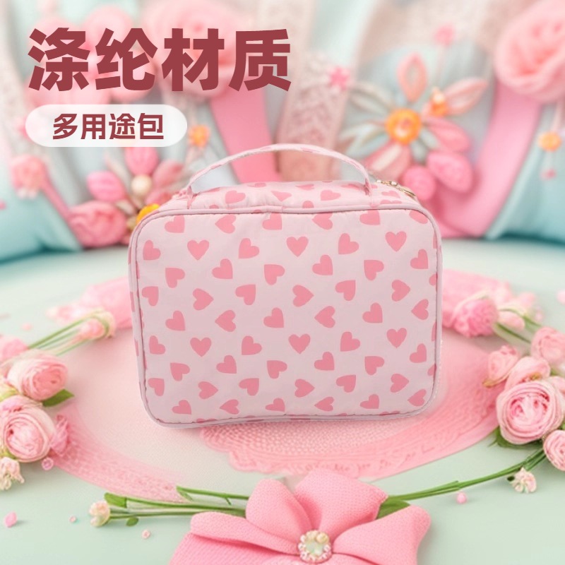 新款两件套爱心化妆包清新甜美大容量分区收纳旅行便携洗漱包定制