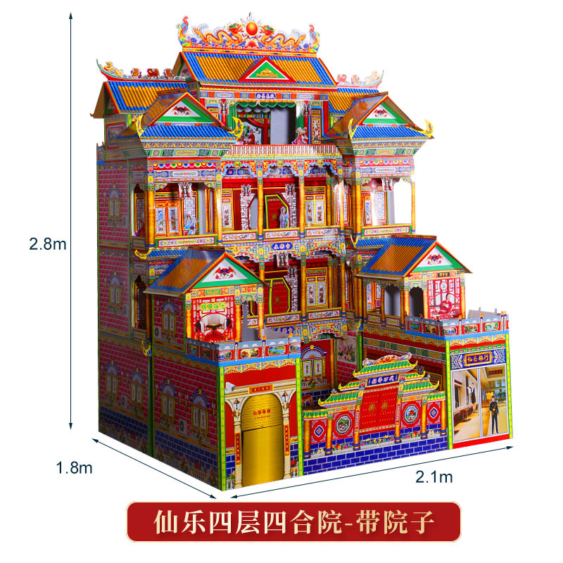 仙乐纸扎别墅灵屋冥府冥房纸房子殡葬祭祀白事用品烧纸楼房纸别墅