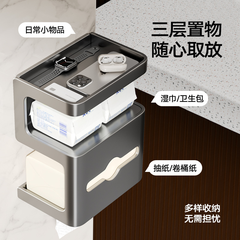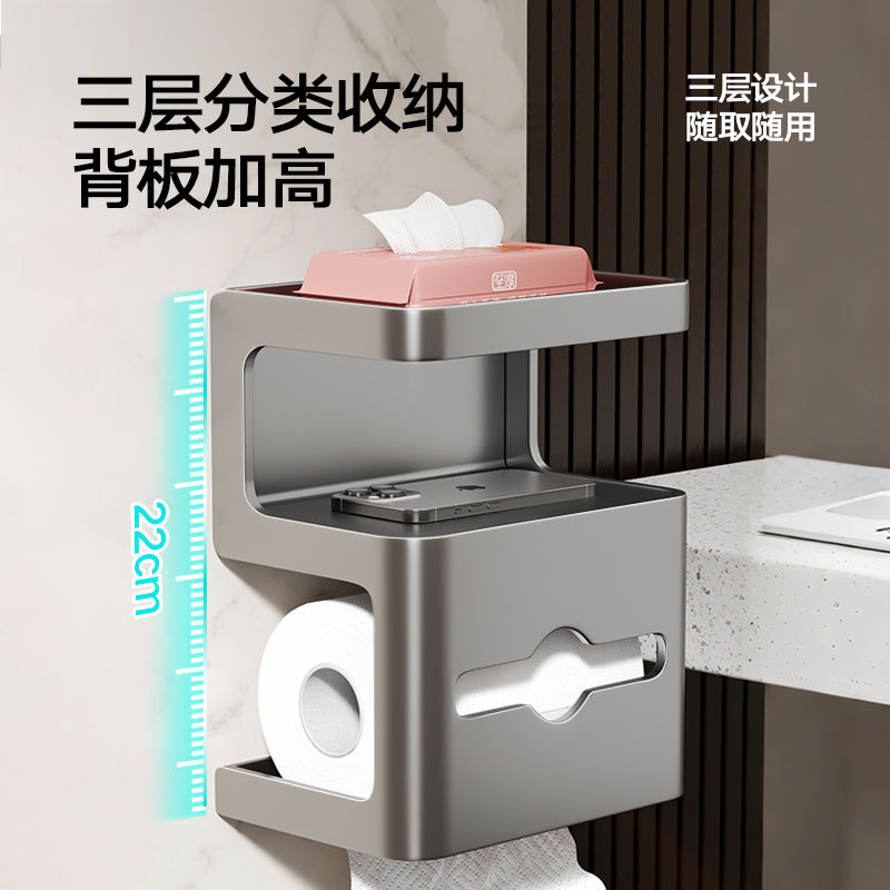 尺寸【抽/卷纸双用】拒变形-枪灰加厚-免打孔三层纸巾盒