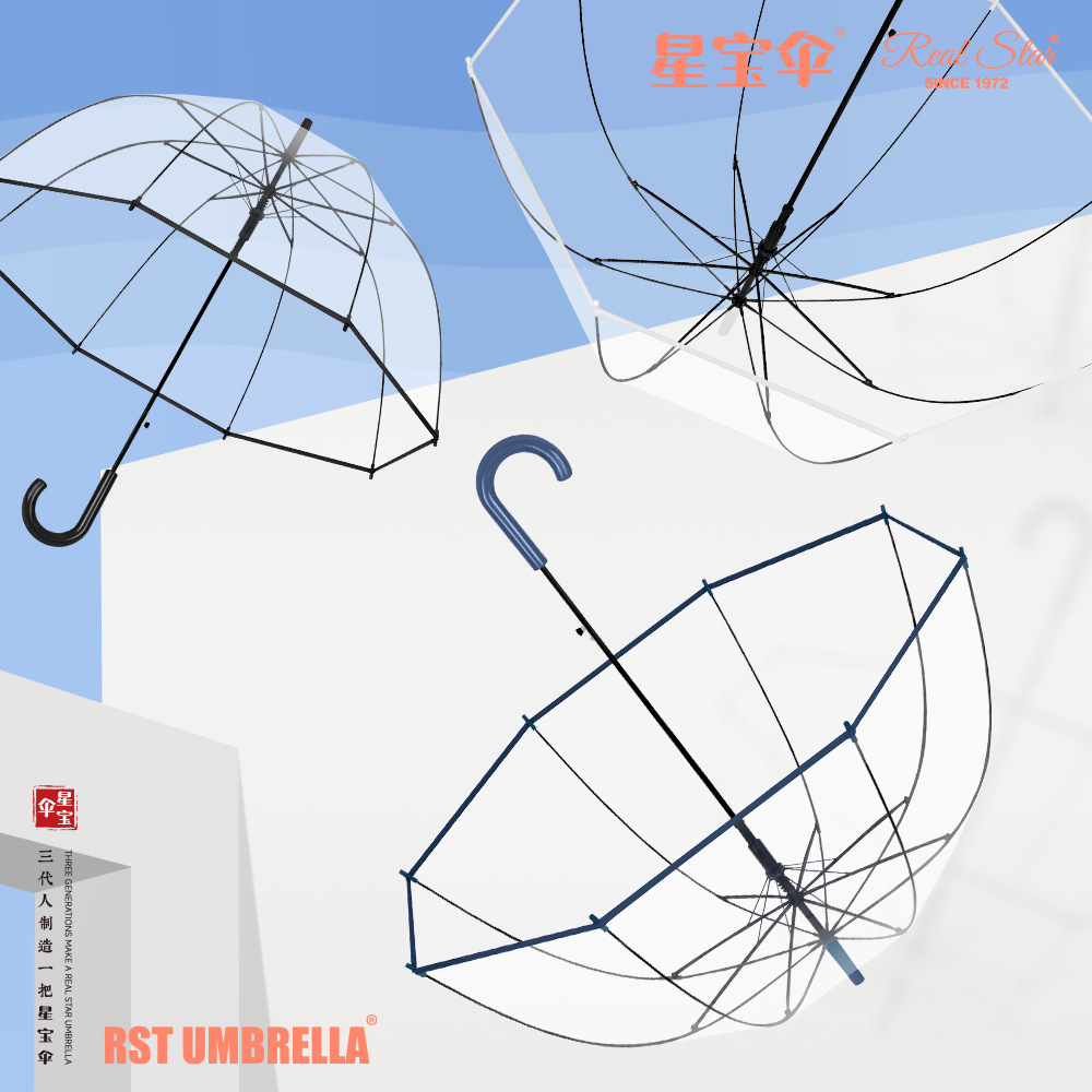 网红时尚阿波罗拱形鸟笼伞 全透明直杆长伞防风防雨简约雨伞批发
