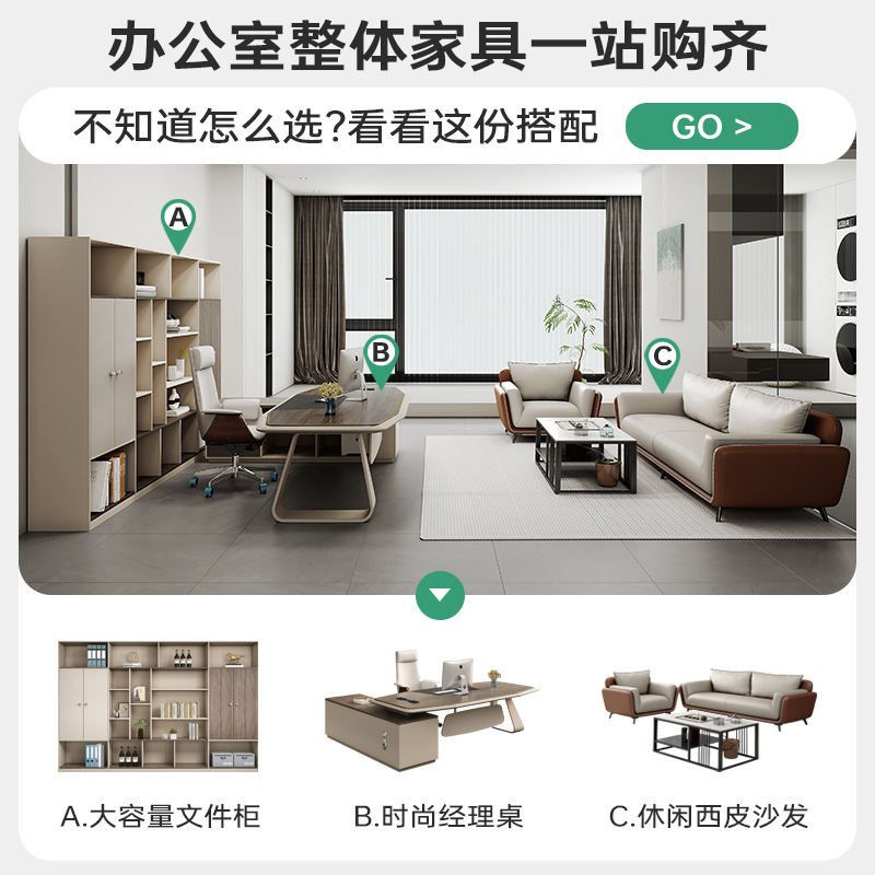 颜色3.0米老板桌+3.2米声控灯带文件柜B款 【免费送装】
