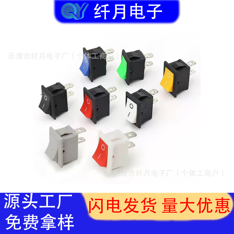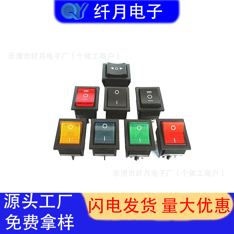 船型开关KCD4系列4/6脚2/3档带灯/无灯翘板多颜色电源开关