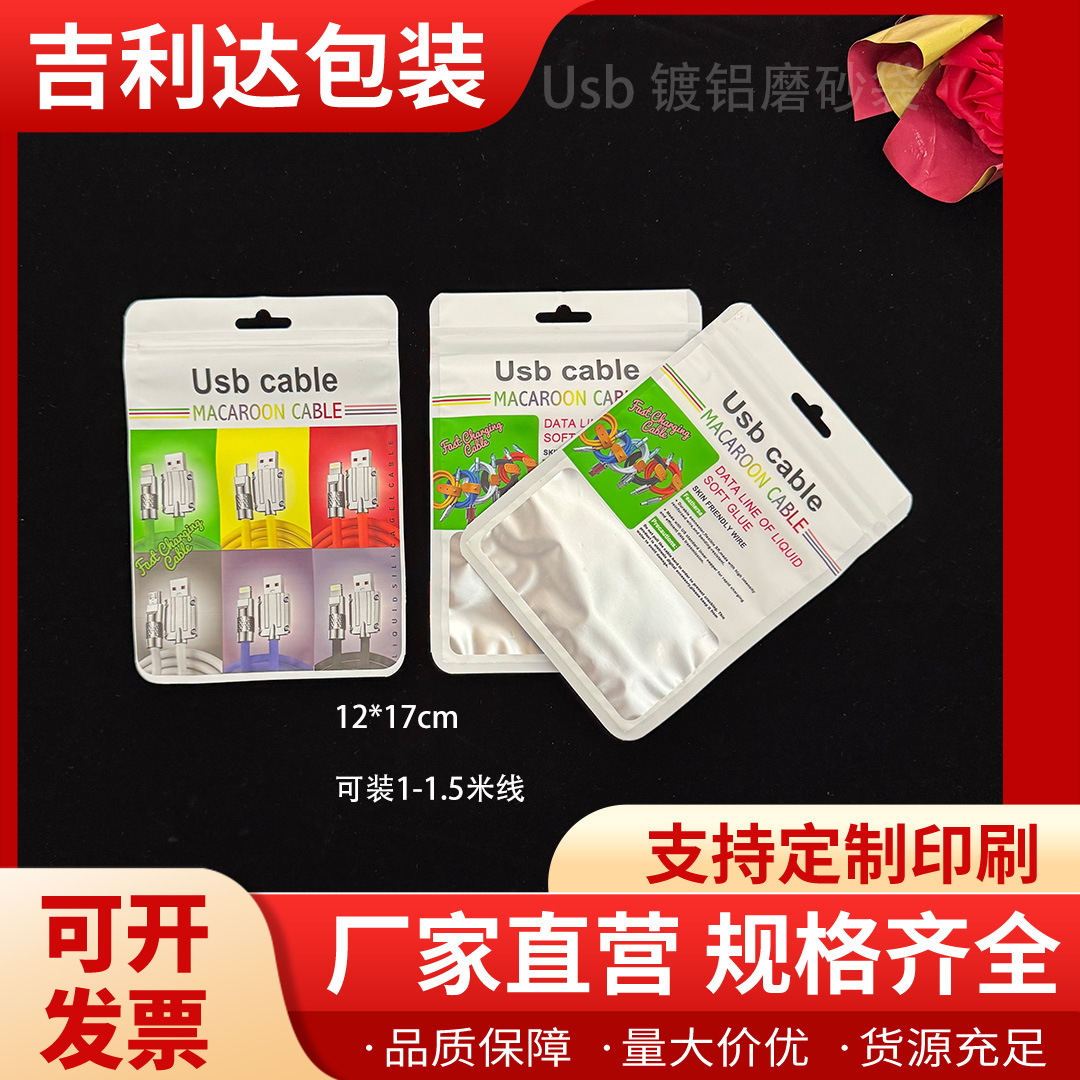 12*17cm彩色Usb数据线镀铝珠光膜自封袋可装1米-1.5米线材耳机线