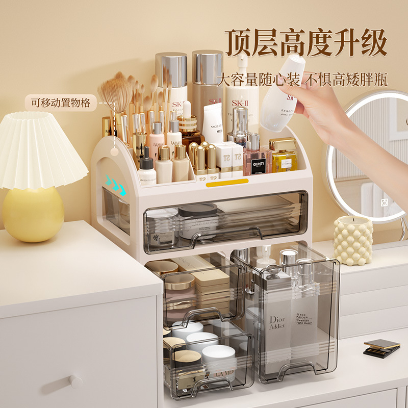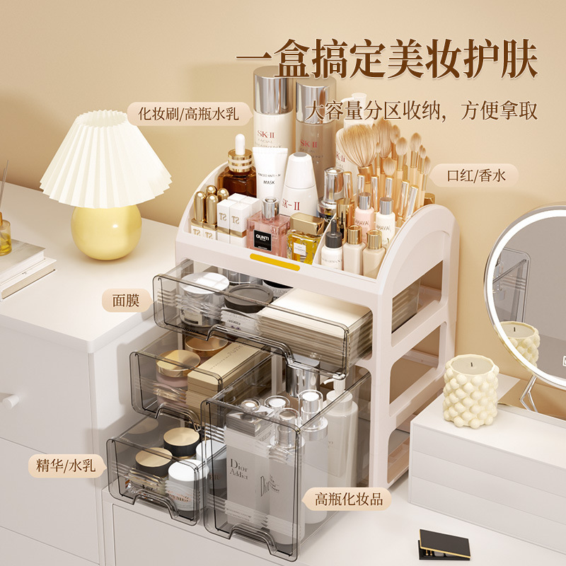 化妆品收纳盒桌面整理防尘台面护肤收纳柜置物架抽屉大容量化妆盒