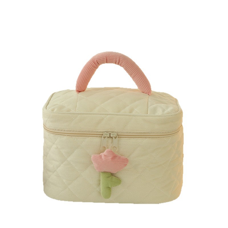 奶油灯芯绒化妆包大容量女收纳包高级感可爱化妆旅行便携化妆包包