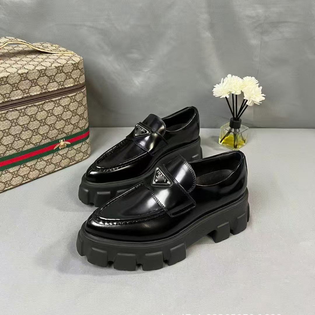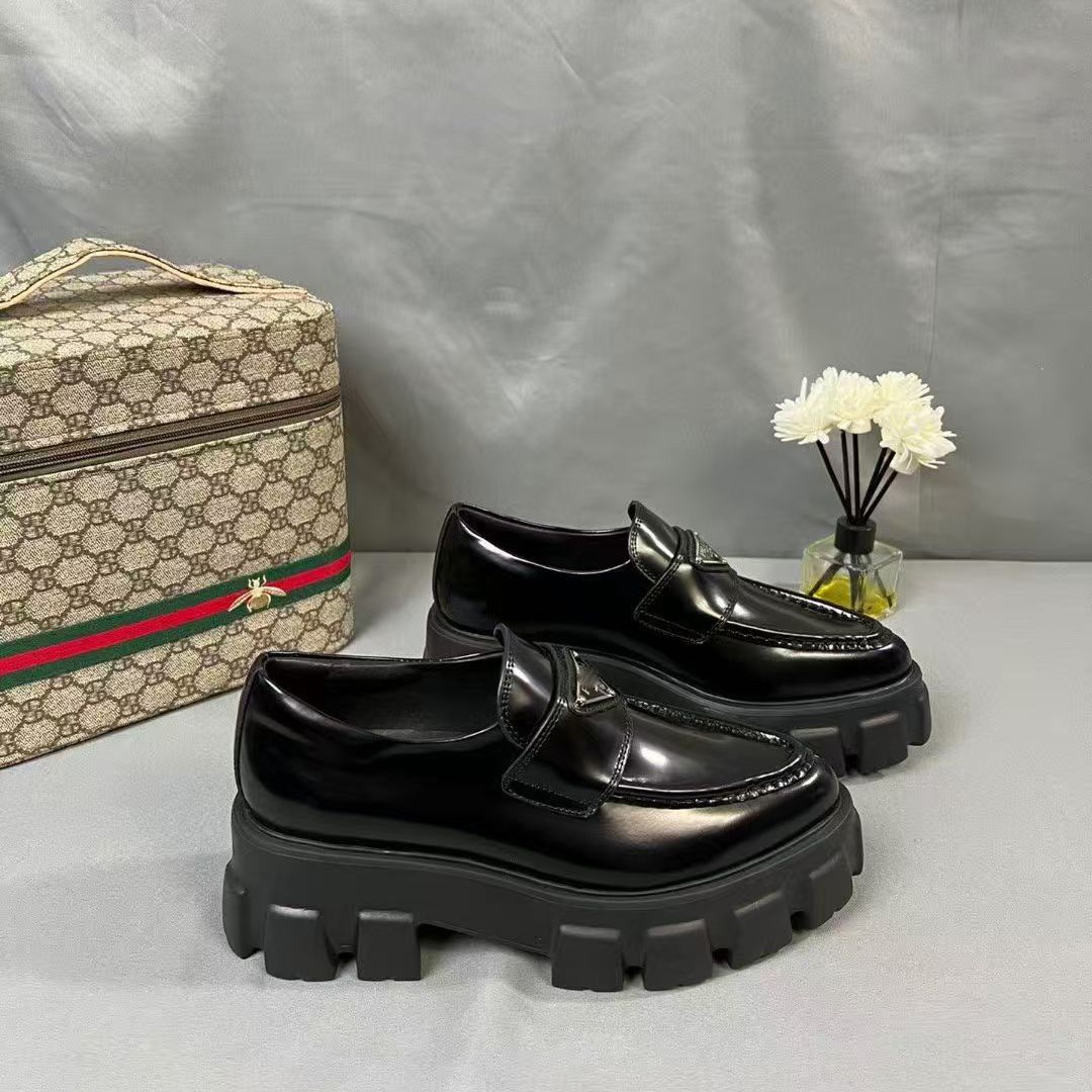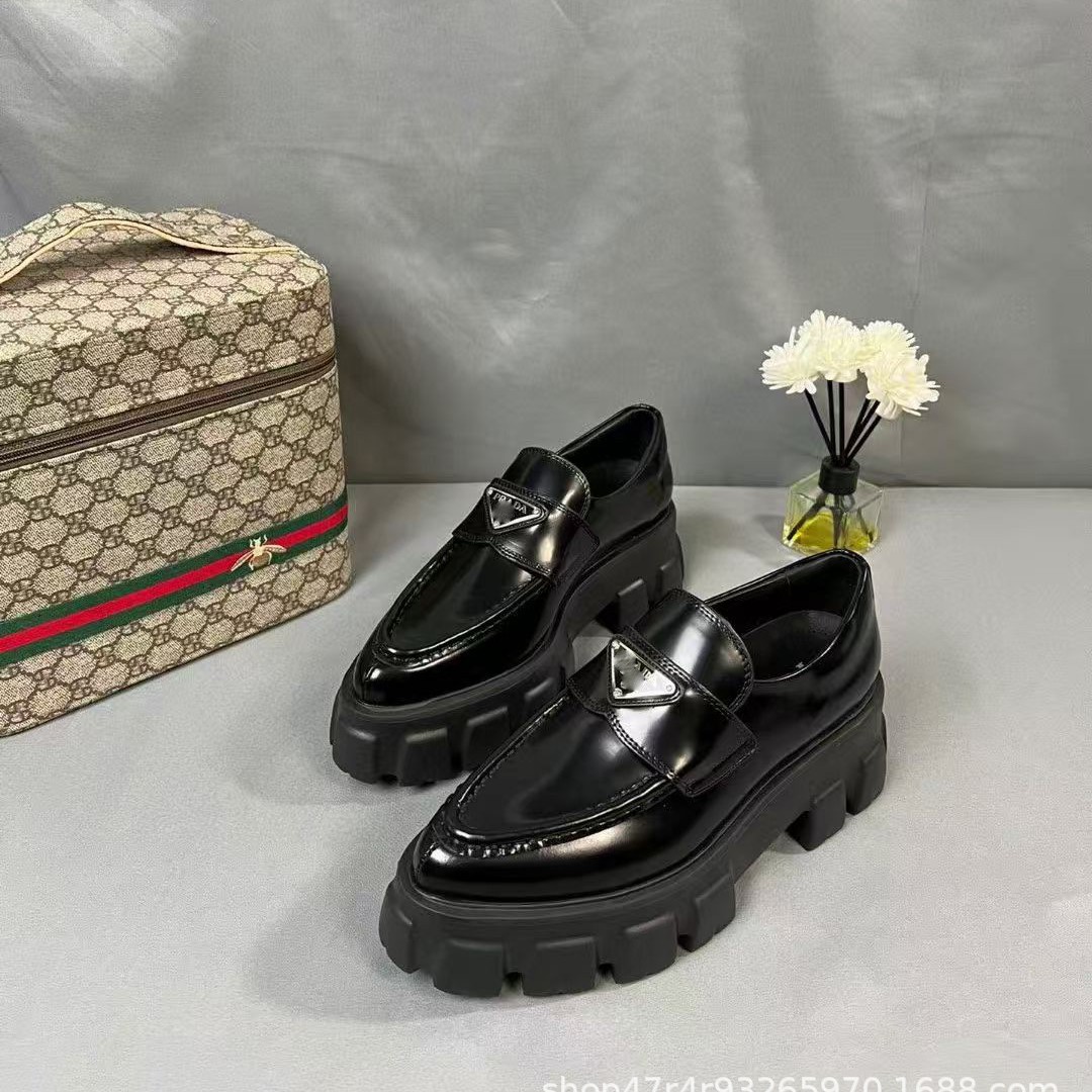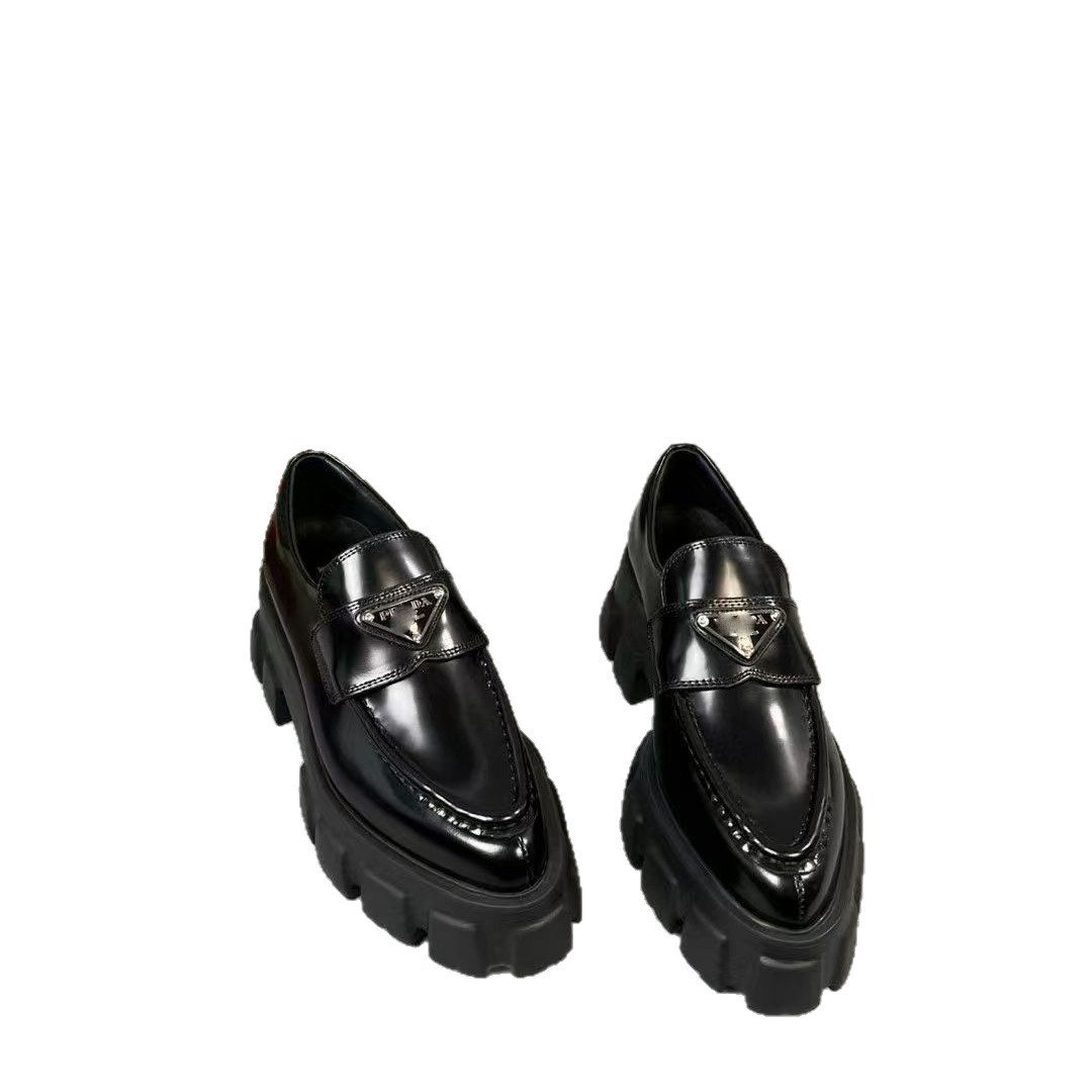 P家标齿轮厚底乐福鞋2025年浅口轮胎鞋时装小皮鞋松糕鞋皮面女鞋