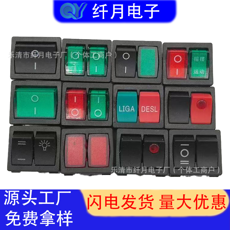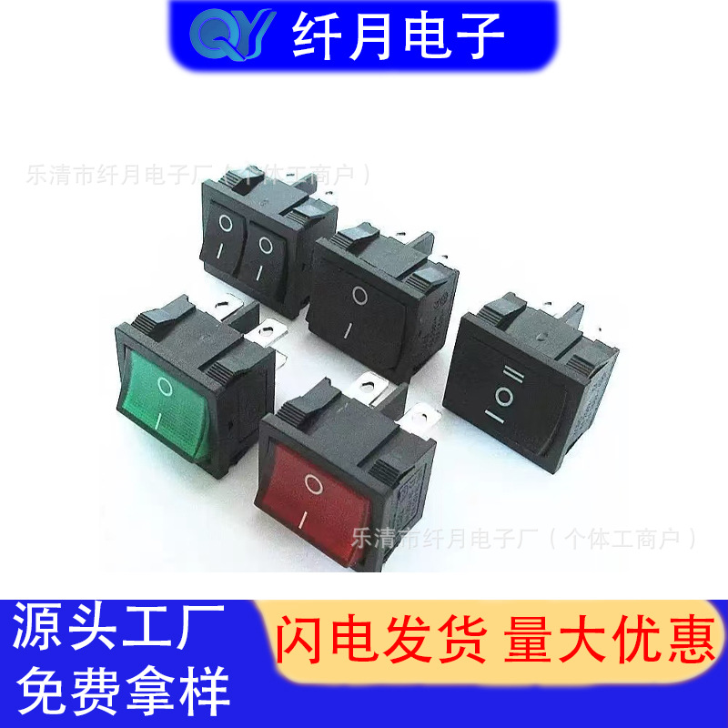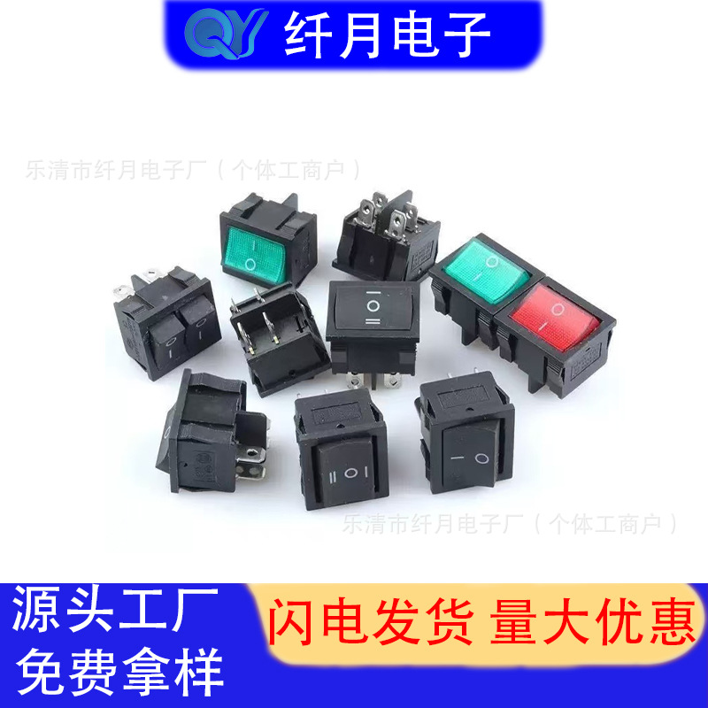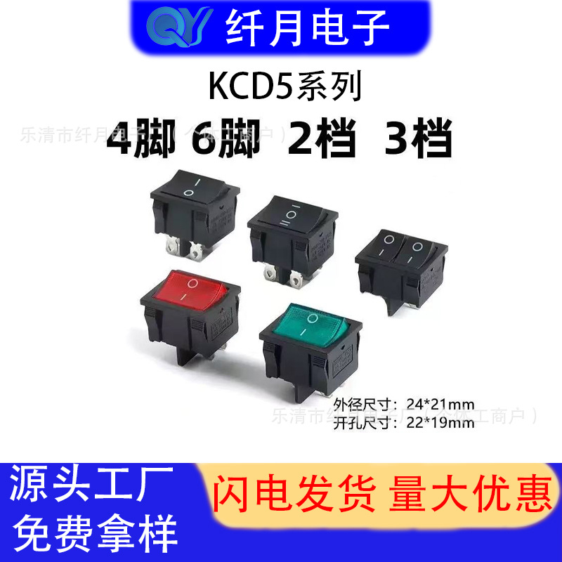 船型开关KCD5 4/6脚2/3档 带灯/无灯 多颜色翘板电源开关