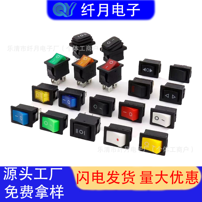 船型开关KCD1系列2/3/4脚2/3档 带灯/无灯多颜色翘板电源开关