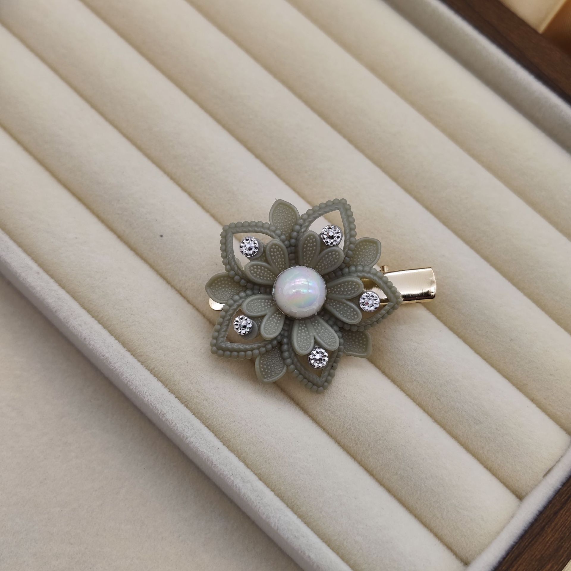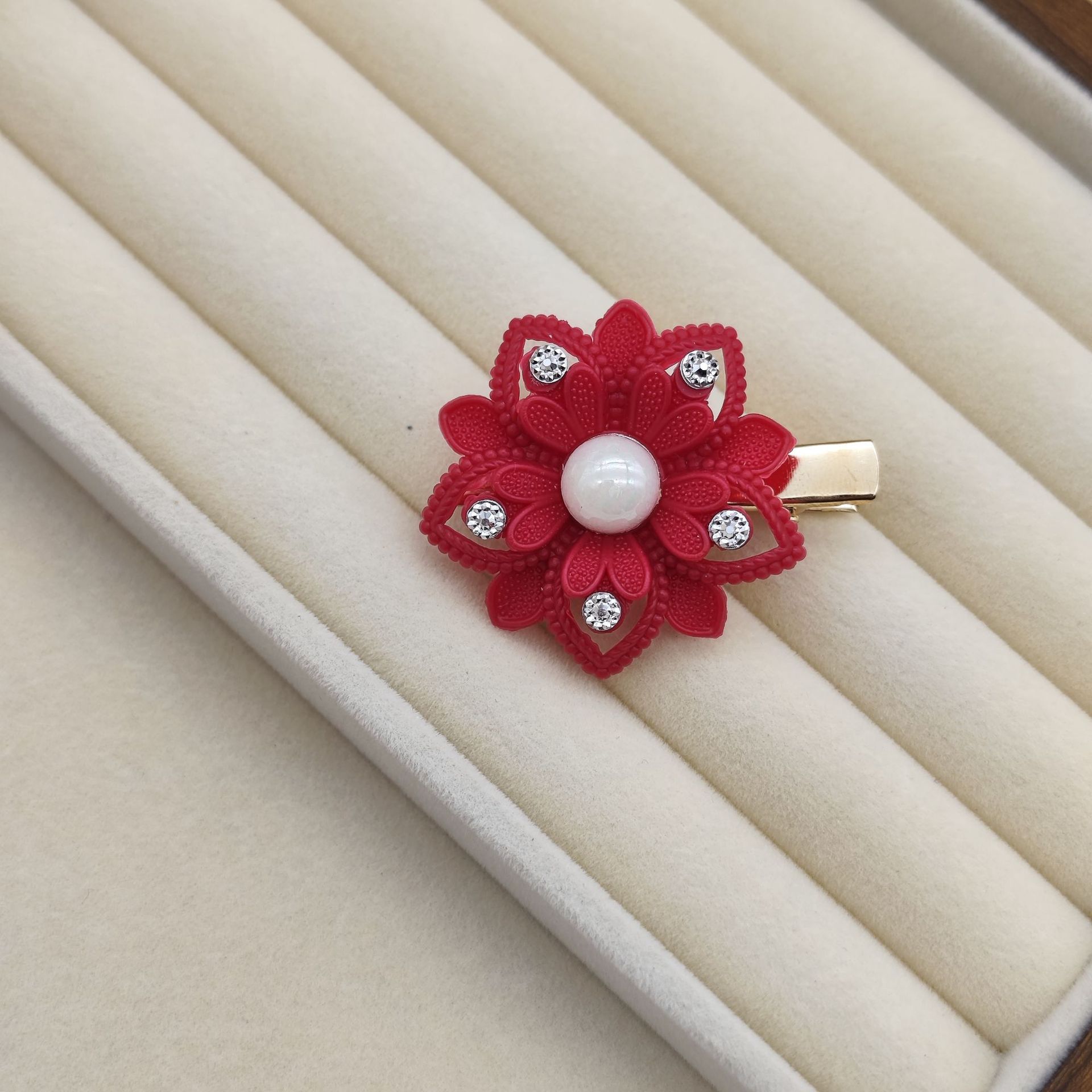 2025新款镶钻花朵鸭嘴夹立体刺绣欧根纱花边装饰迭代风发饰批发