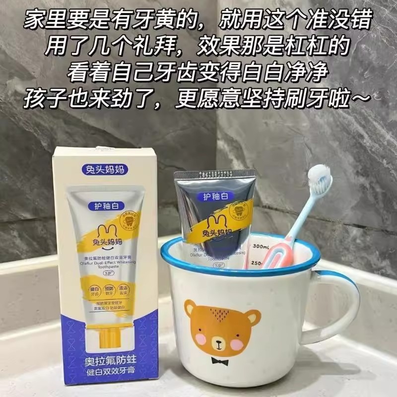 兔头妈妈儿童专用牙膏奥拉氟双效宝宝防蛀防龋齿固齿健白清新换牙