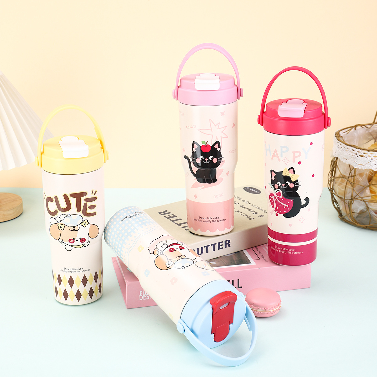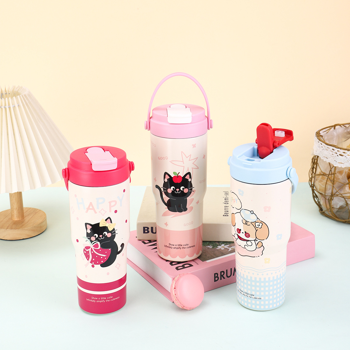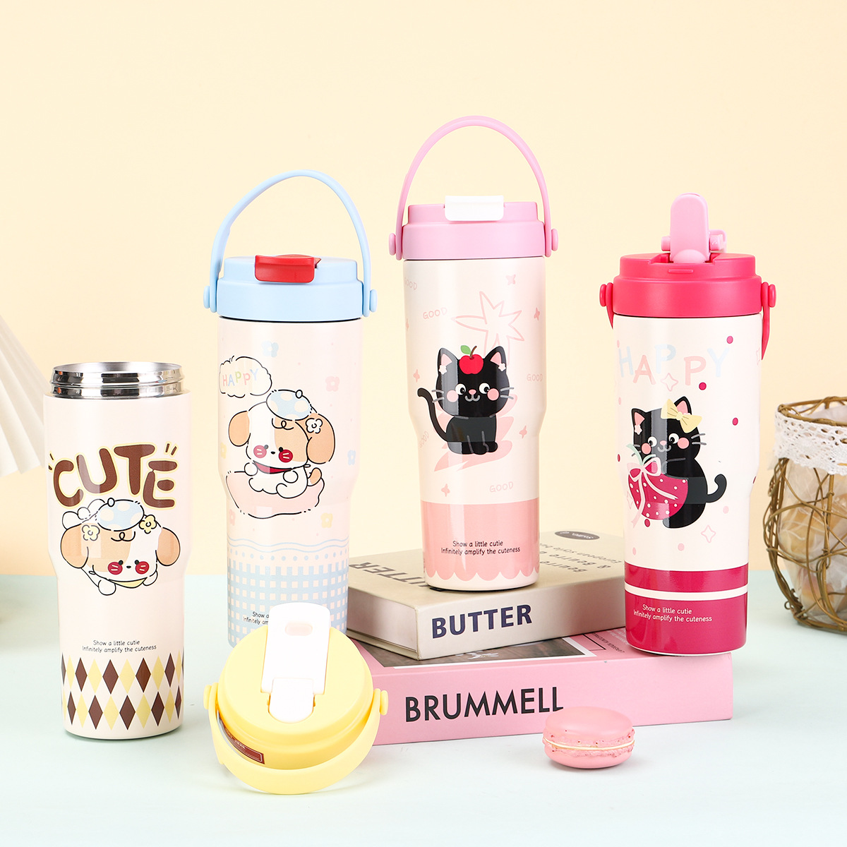 高颜值新款卡通咖啡杯304不锈钢保温杯保冷杯大容量儿童双饮水杯