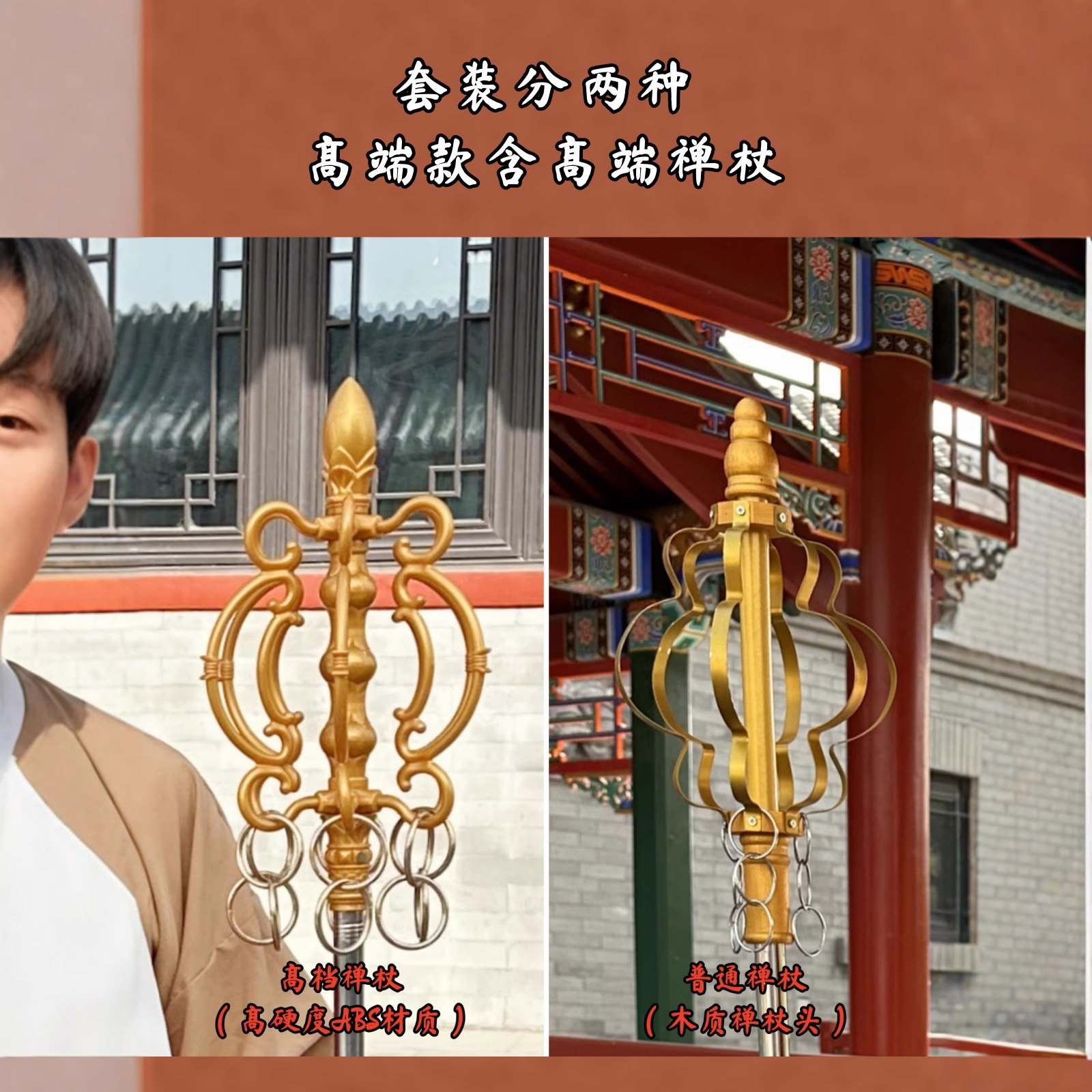 | 颜色 | 棕色高档款(高档禅杖) 可换带字帽子 | 颜色 | 黄色经典款(无禅杖) 可换带字帽子 |