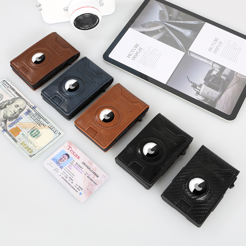 跨境热销PU皮革男士商务卡包证件包金属rfid防盗刷自动弹出式卡包