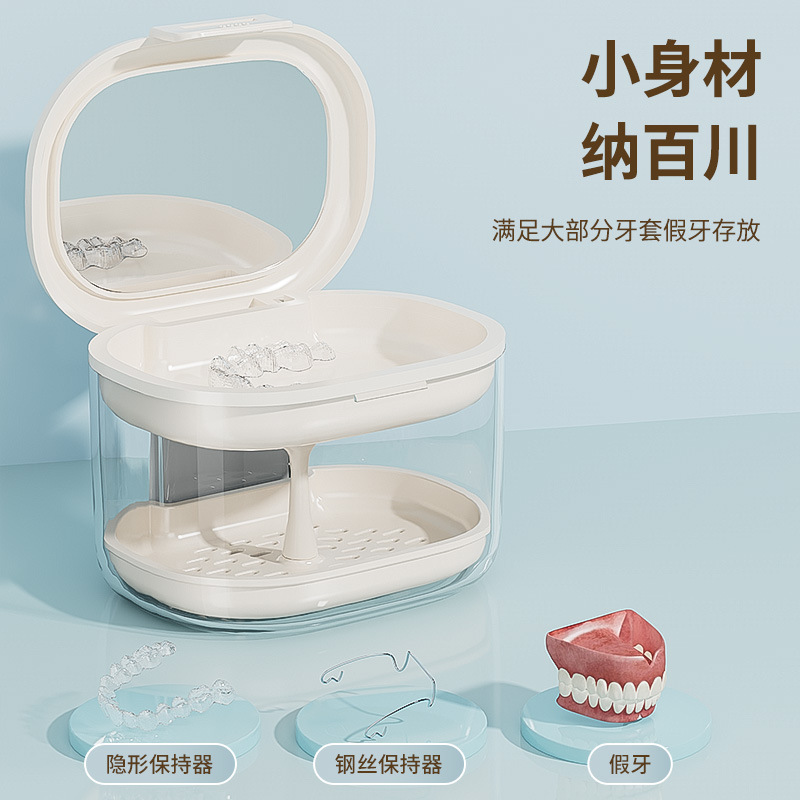 牙套收纳盒隐形假牙便携随身儿童医美牙齿矫正保持器清洗盒带镜子