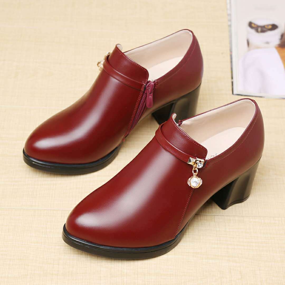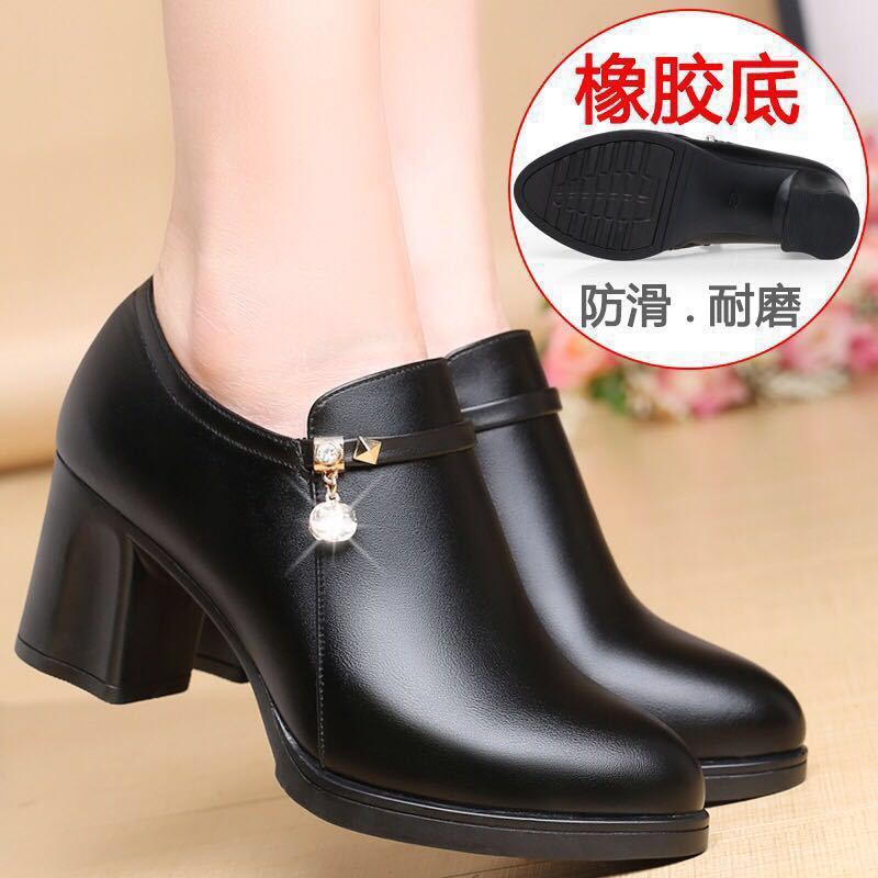 跨境软皮单鞋女2023新款中年女鞋防滑软底中跟女士皮鞋工作鞋