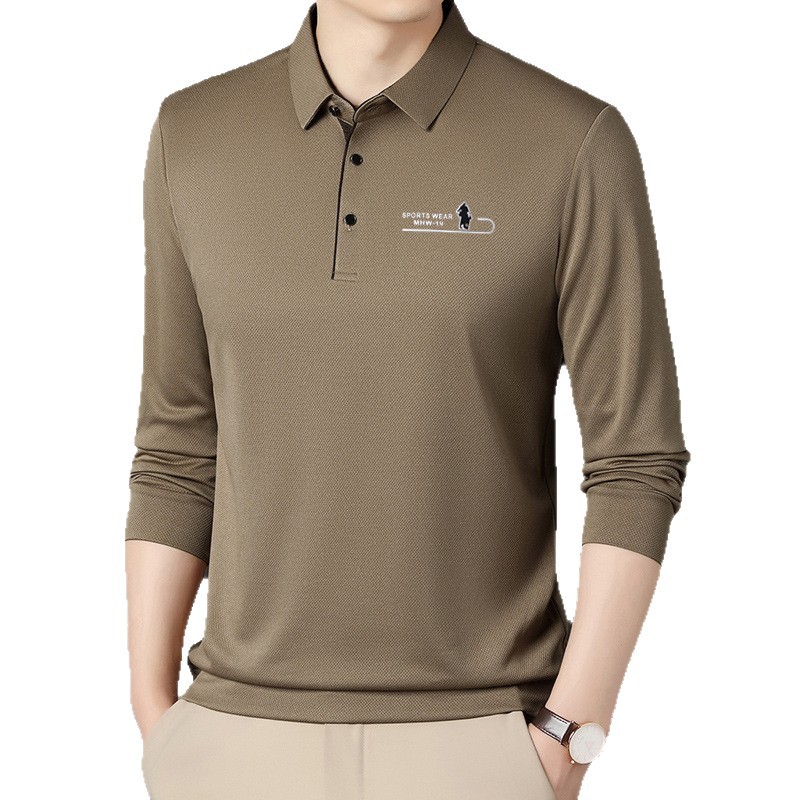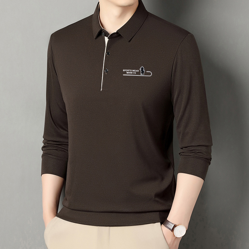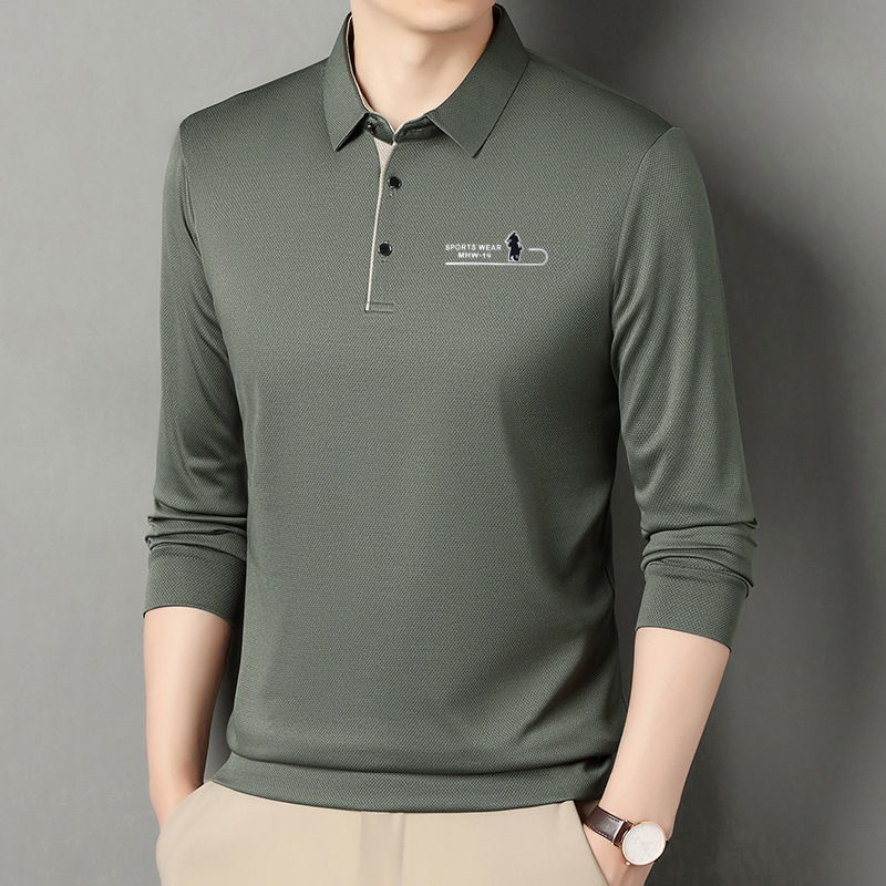 直播男士长袖翻领T恤宽松薄款弹力亲肤舒适爸爸上衣秋款t恤男美式