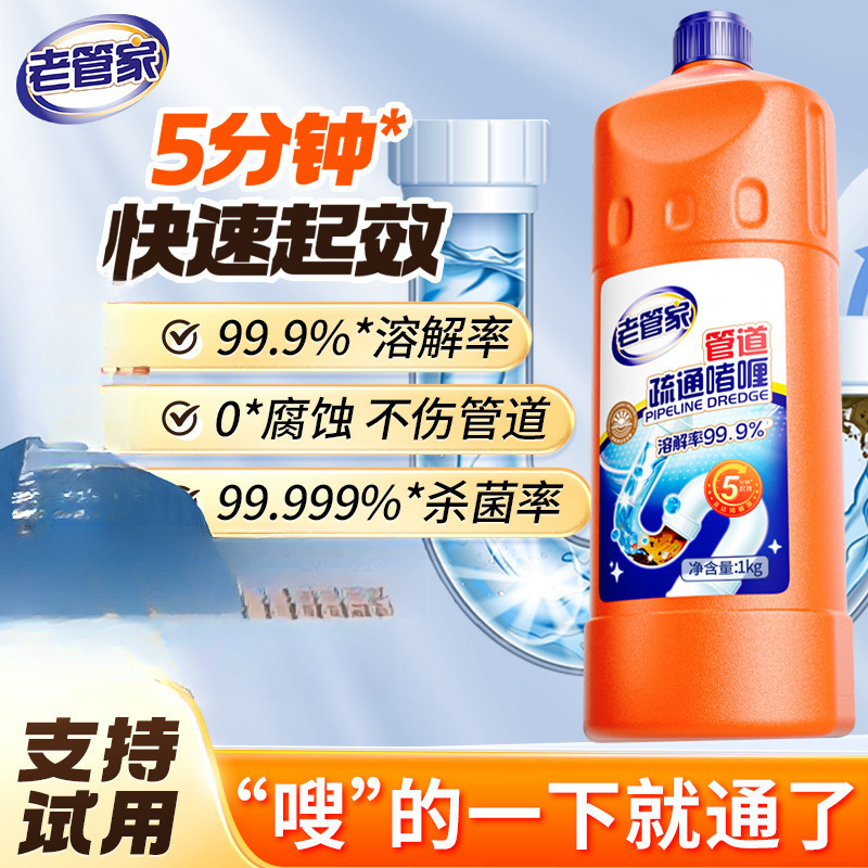 老管家管道疏通剂溶解通厕所马桶厨房下水道油污堵塞液体包邮批发