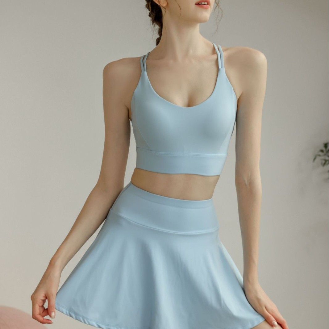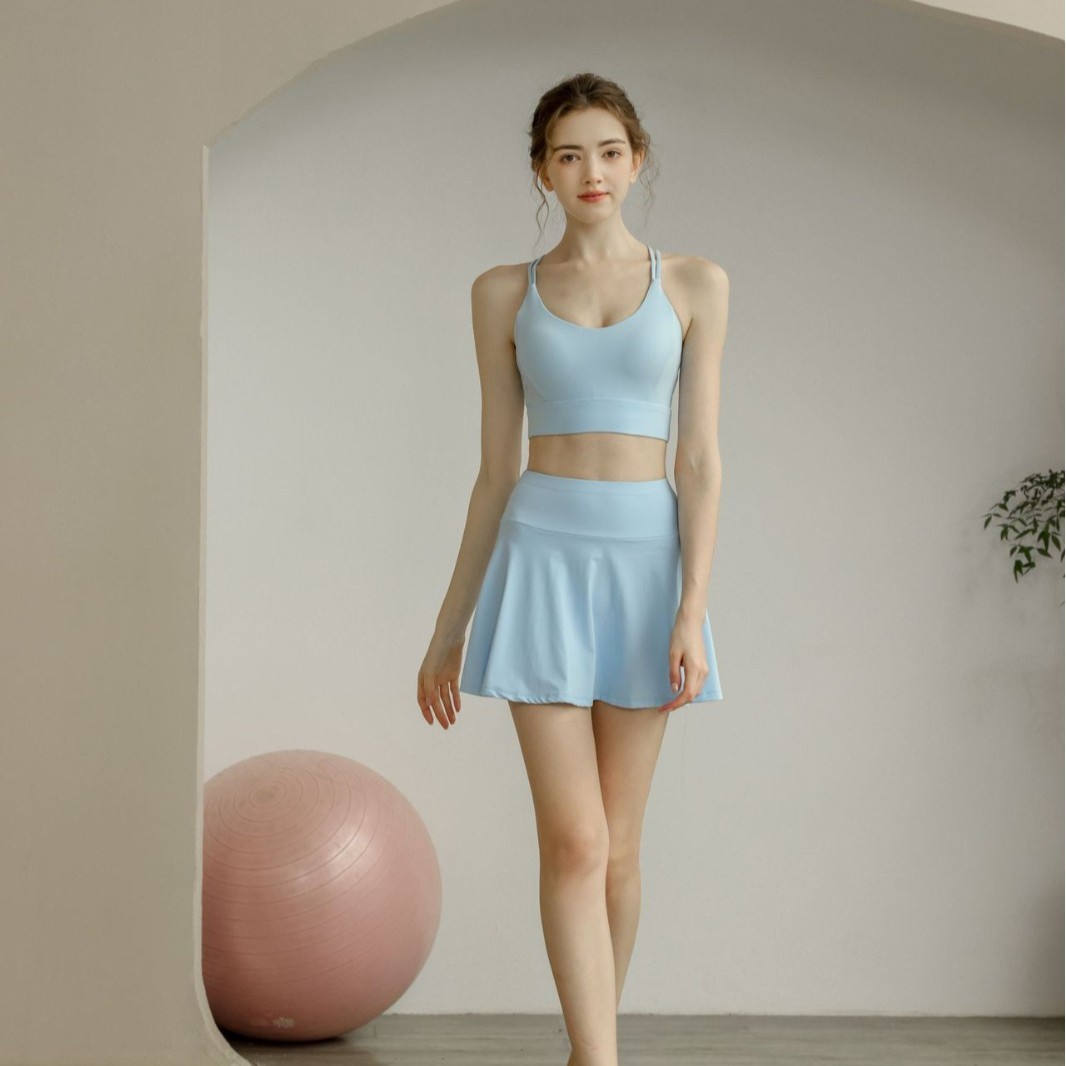 | 颜色 | 天窗粉蓝—运动文胸+短裙 | 尺码 | S |