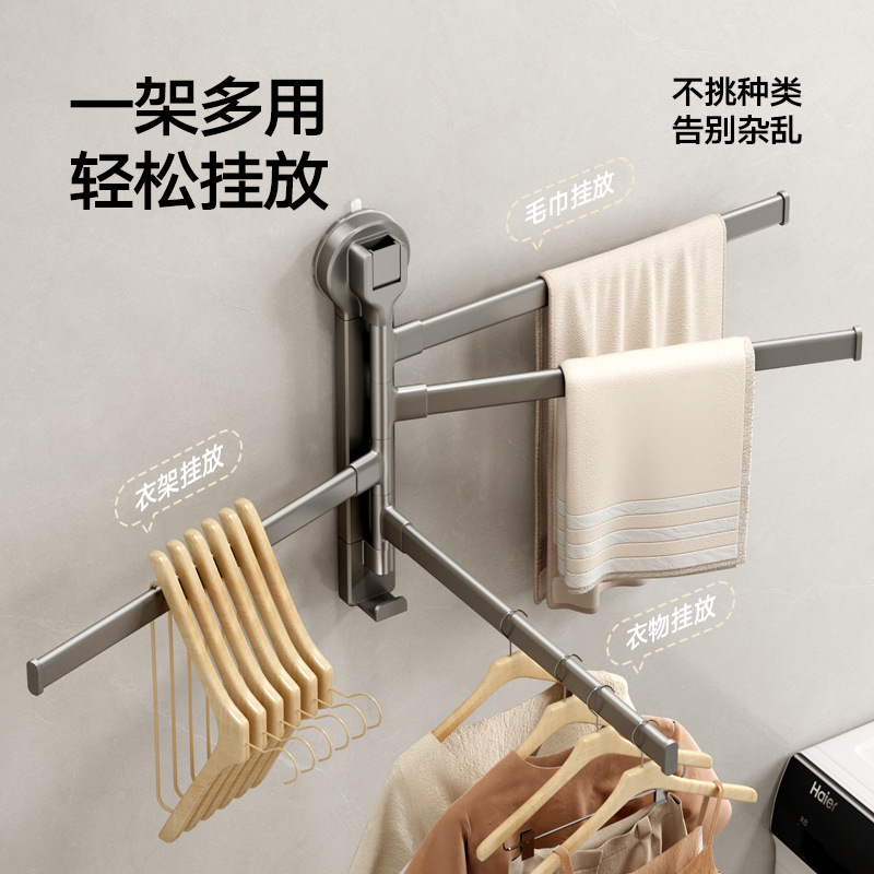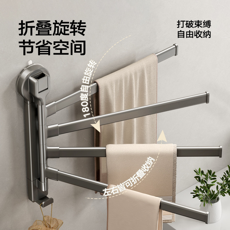 家用浴室卫生间吸盘旋转抹布免打孔毛巾多杆壁挂置物架吸盘式挂杆