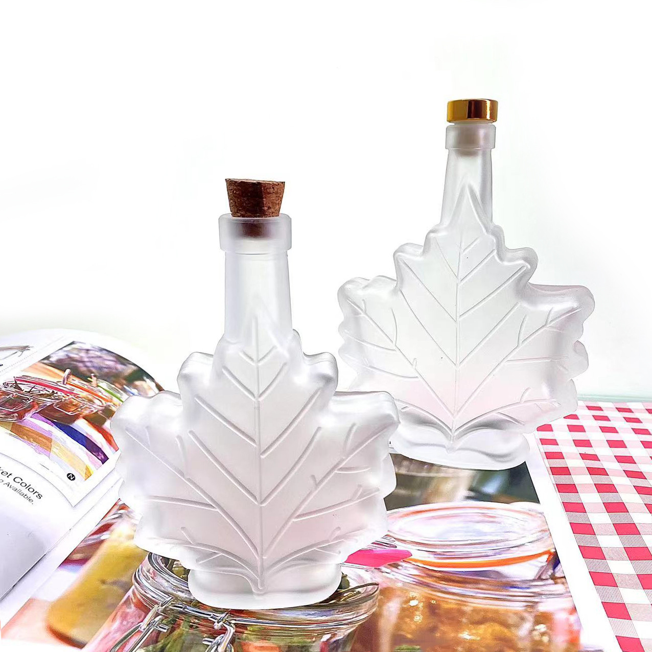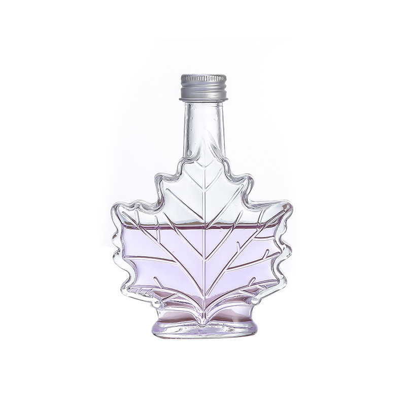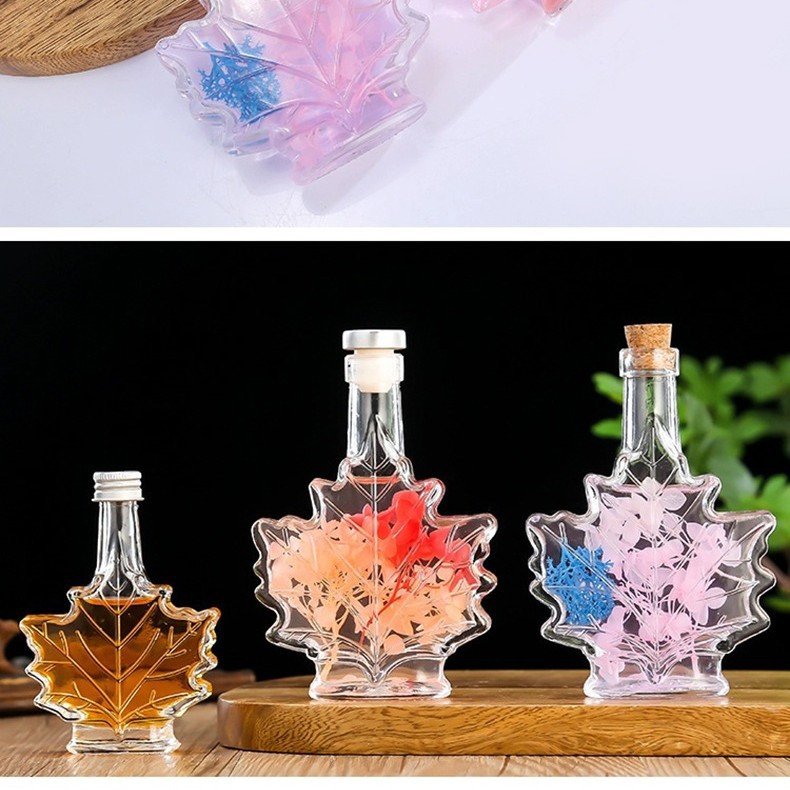 创意透明饮料果酒小酒瓶50ml/100ml/250ml枫叶香薰玻璃分装小空瓶