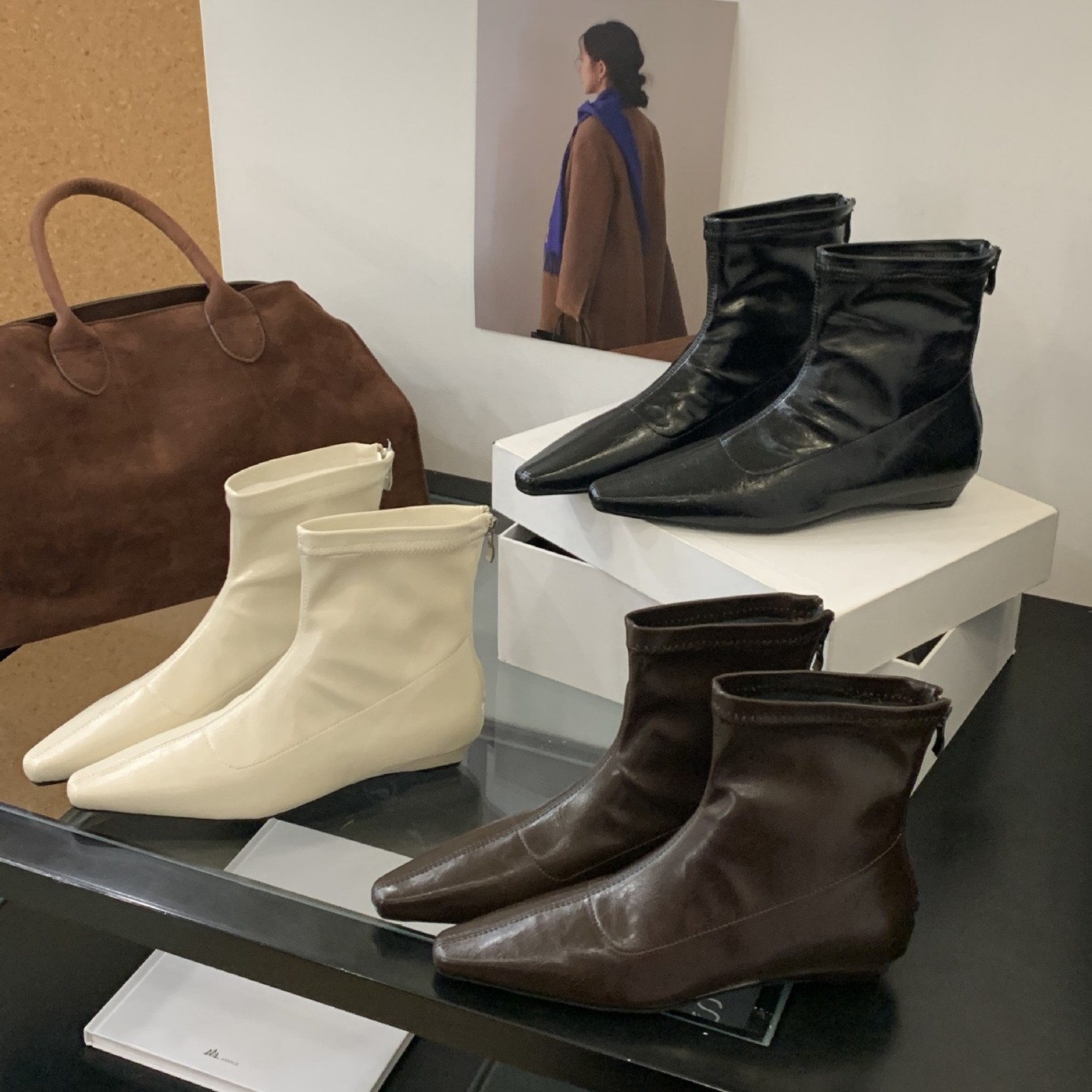 2025秋冬新款小方头舒适时装靴坡跟内增高纯色感性时尚百搭女短靴