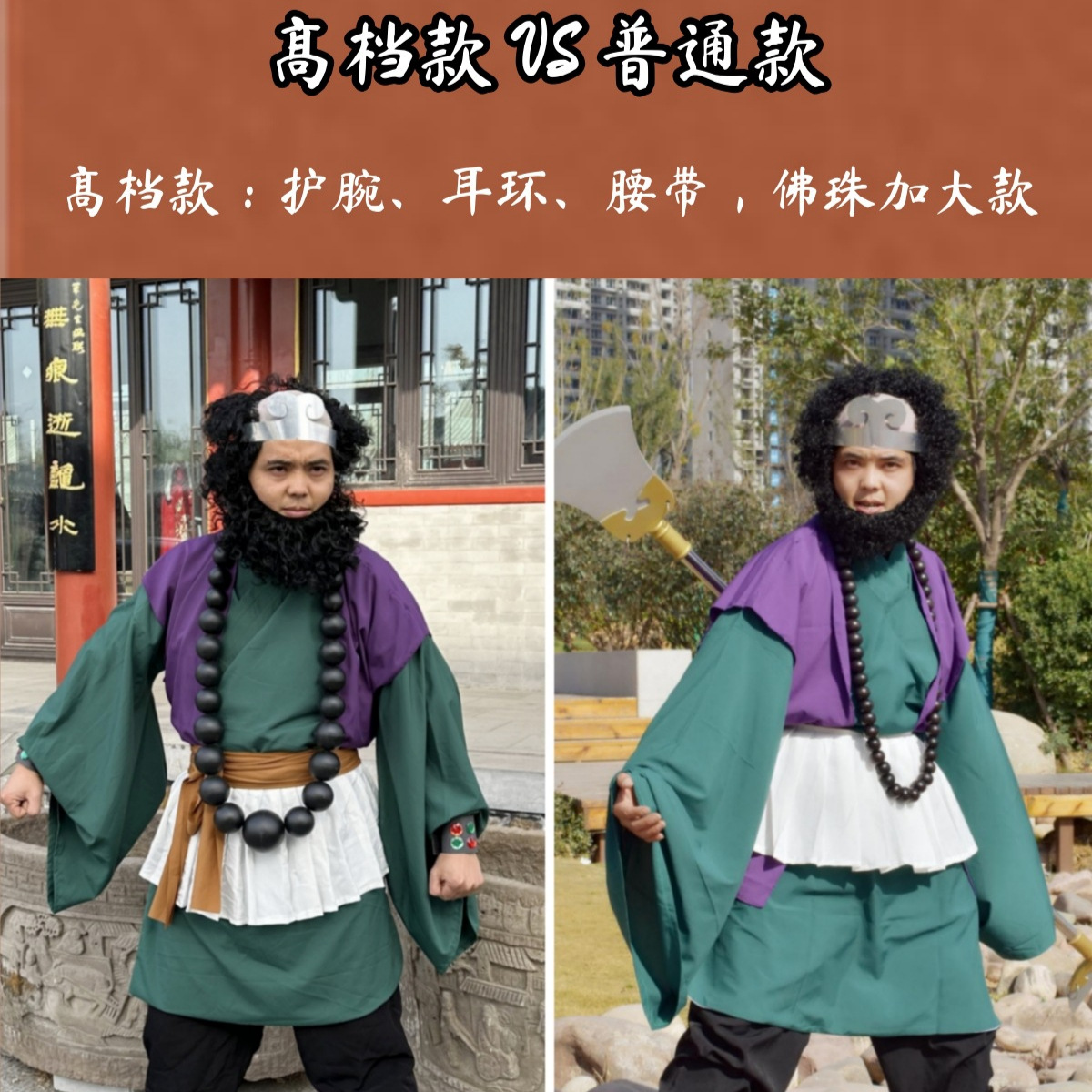 | 颜色 | 高档版全套无武器(大佛珠) 包含护腕耳环 | 颜色 | 豪华全套+武器(假发款) 不包含护腕 |