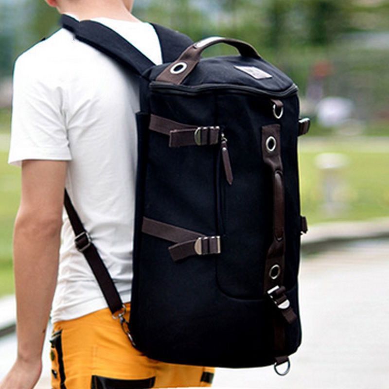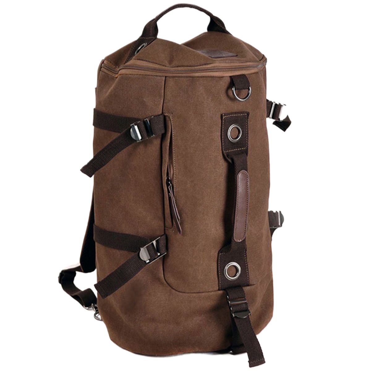 户外双肩包男士旅行背包水桶多功能复古旅行包帆布书包大容量单肩
