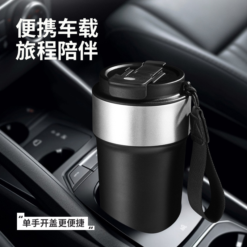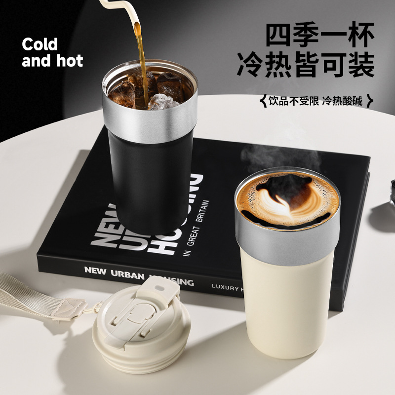 新款304不锈钢保温杯高颜值双饮咖啡杯便携带提绳车载随行杯
