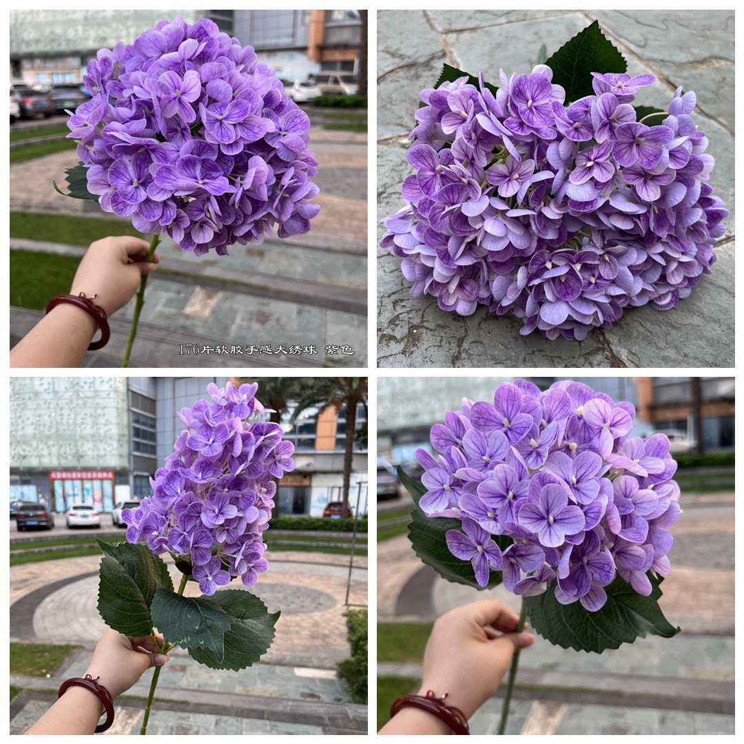 颜色 | 5头法国绣球 浅紫红 | | 颜色 | 5头3D手感绣球 绿紫 |