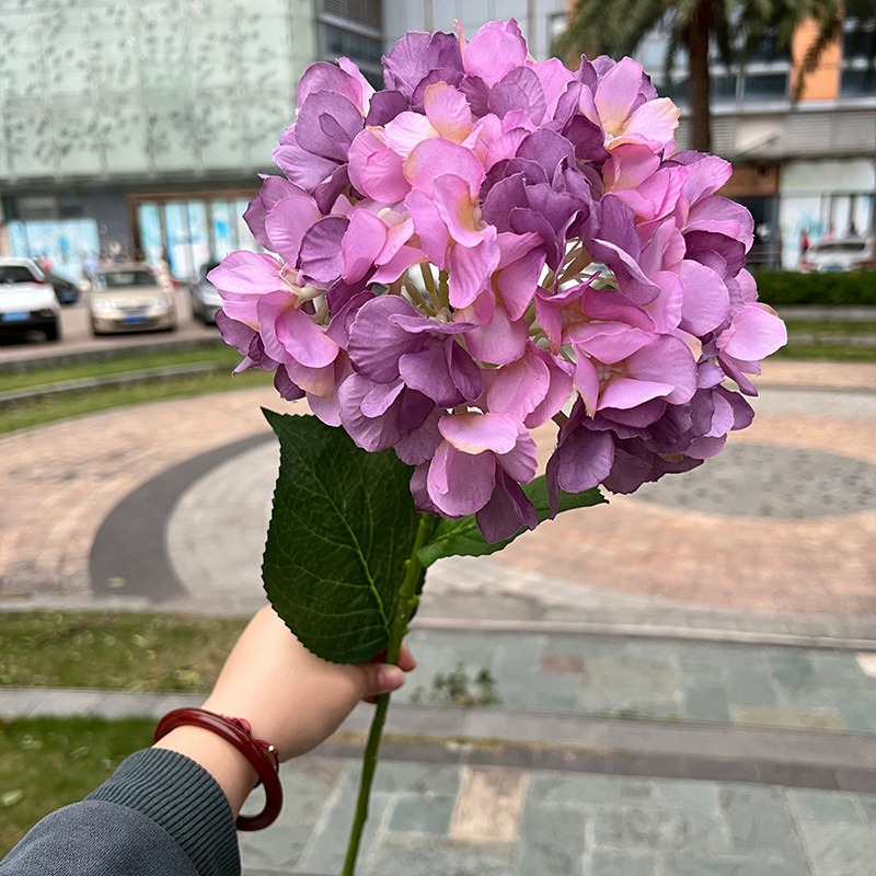 外贸新款紫色绣球 雪青色单头绣球花 深紫婚庆软装仿真花假花批发