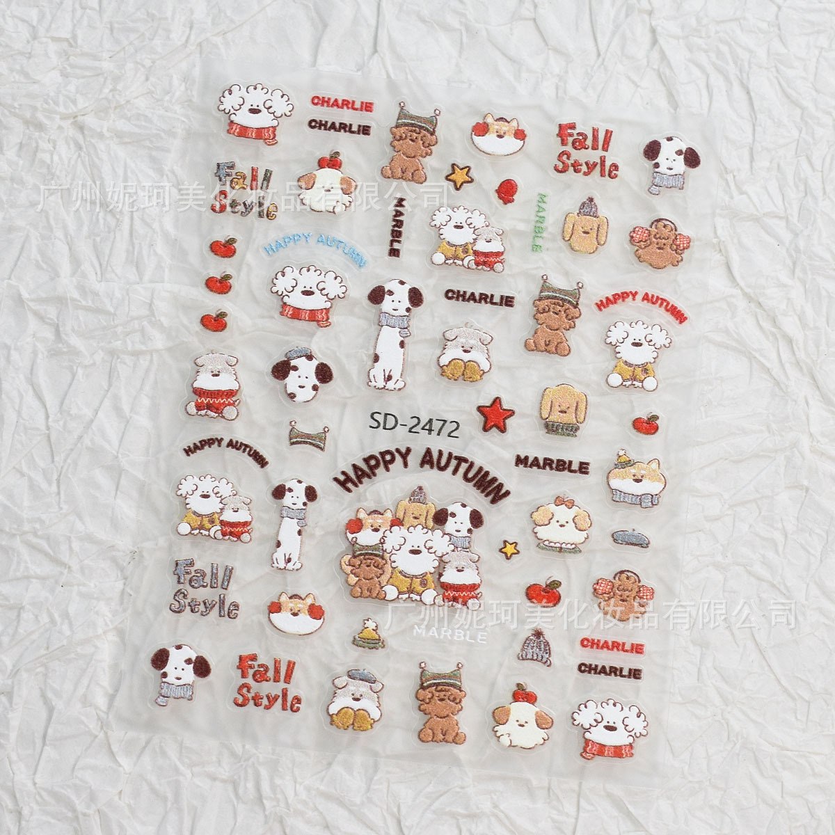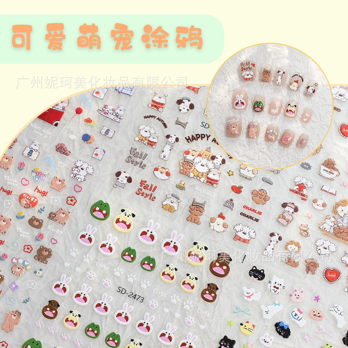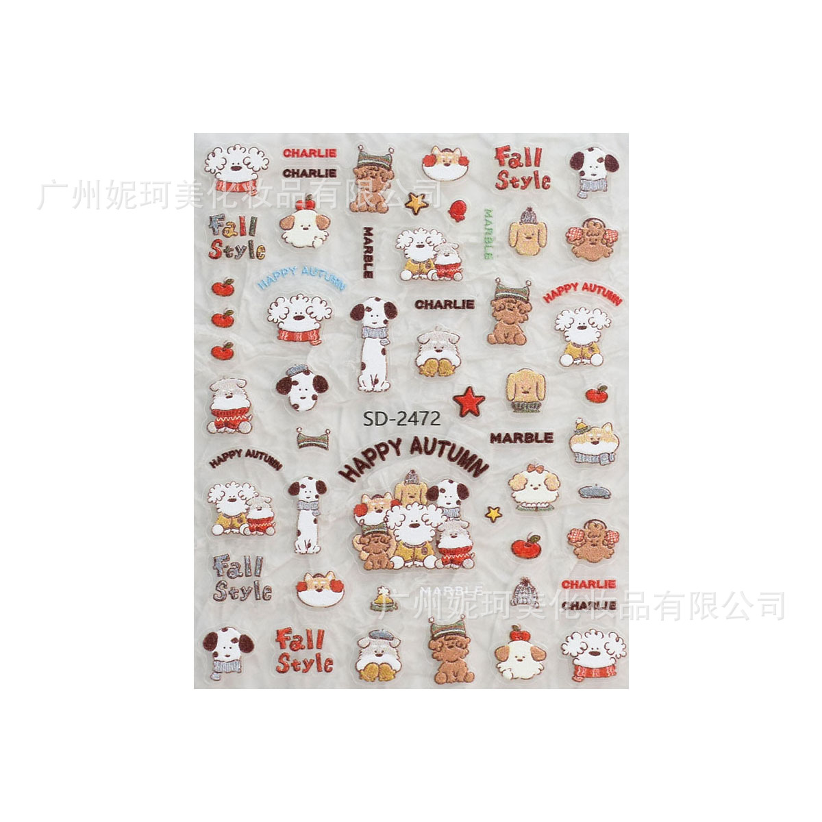 可爱小狗美甲贴纸浮雕tomoni涂鸦卷毛狗狗卡通汪汪指甲装饰贴纸