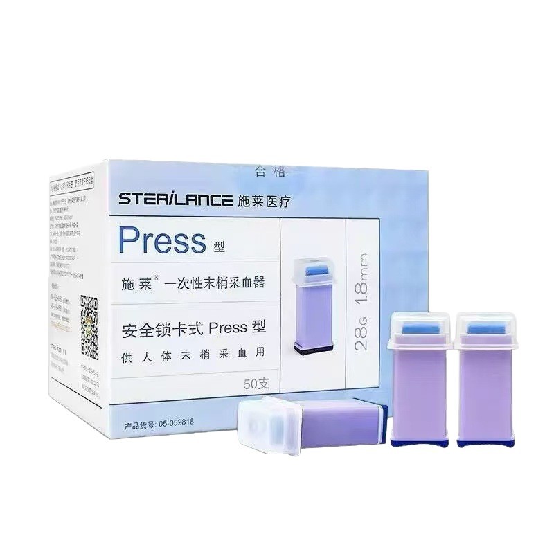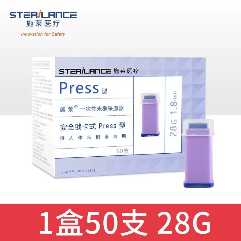 施莱一次性末梢采血器Press型28G锁卡式血糖指尖末梢微痛型采血针