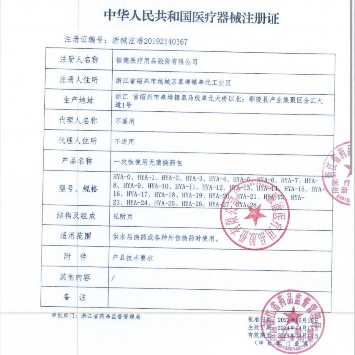| 一次性使用 | 是 | 规格 | 振德 一次性使用无菌换药包HYA-0 灭菌 1套/包--1包-新包装 |