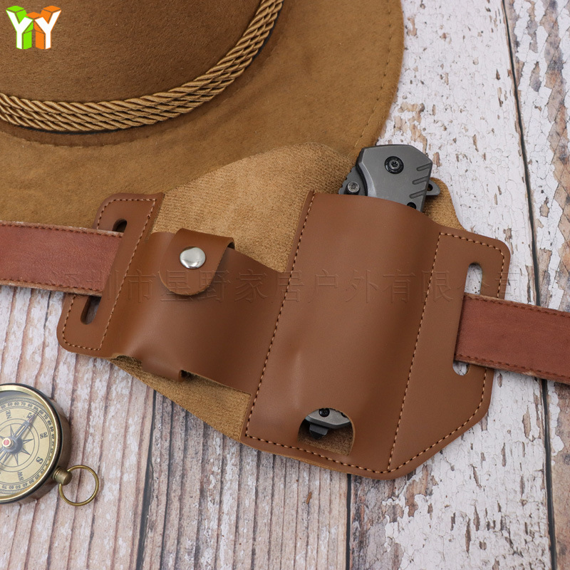 现货皮革户外战术工具收纳刀套 高级感指南针折叠小刀通用pu皮套