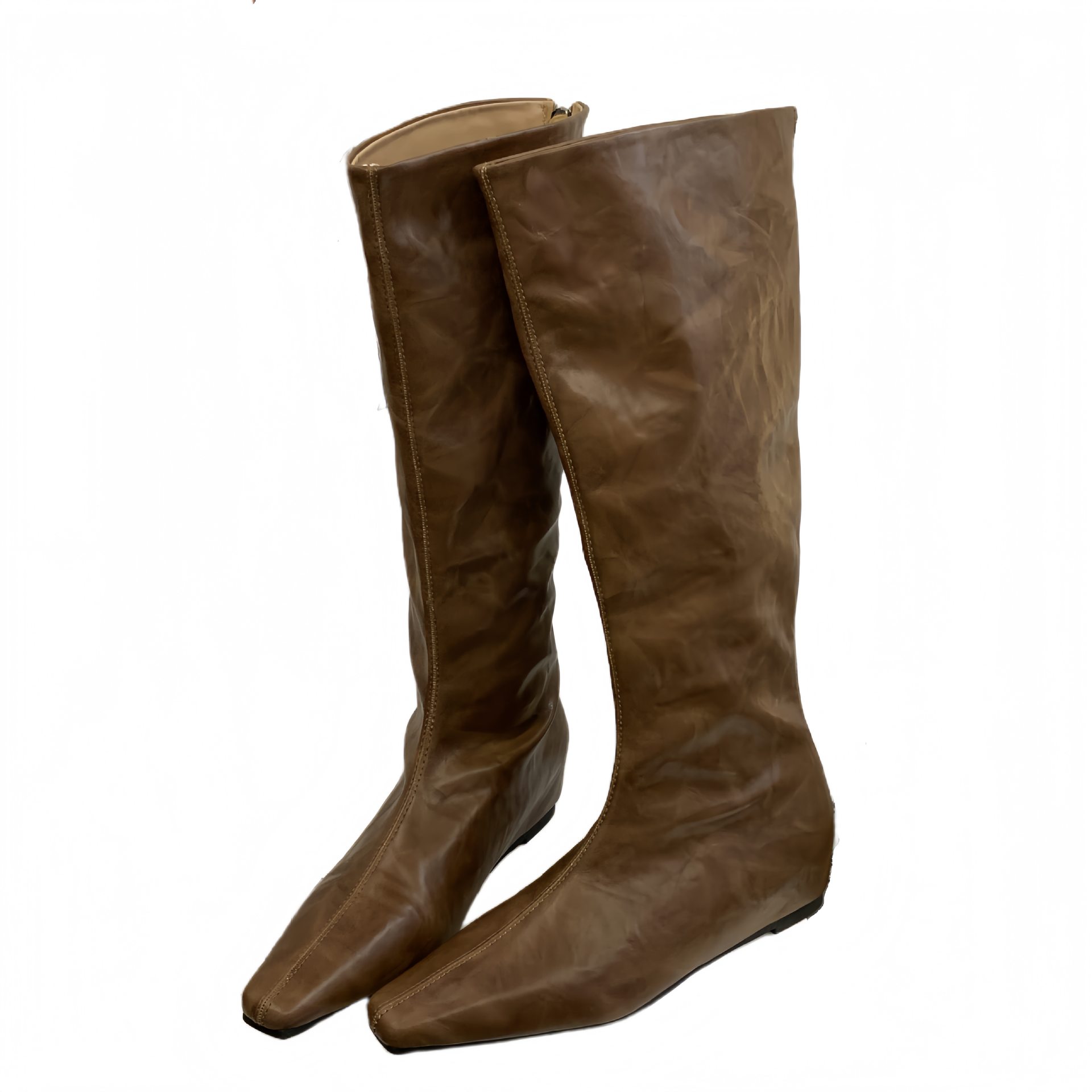 新款欧美气质长靴2025年秋冬季小方头坡跟长靴高筒时尚百搭女长靴